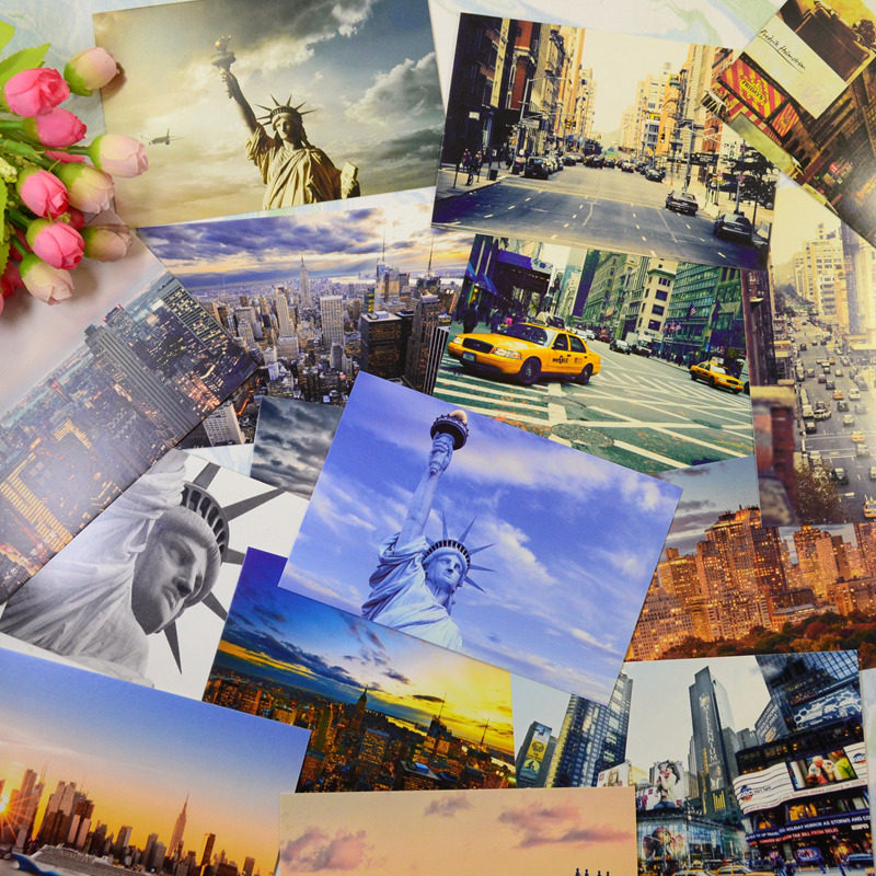 美国城市风景明信片 纽约加州芝加哥夏威夷拉斯维加斯8款选
