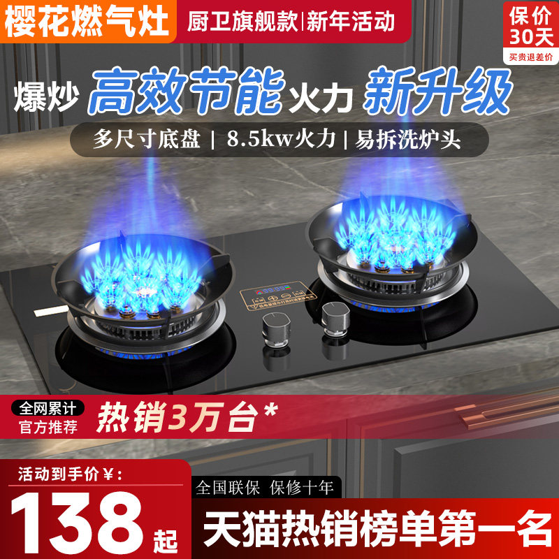 樱花大火力燃气灶双灶家用天然气台式液化气嵌入式猛火节能煤气灶