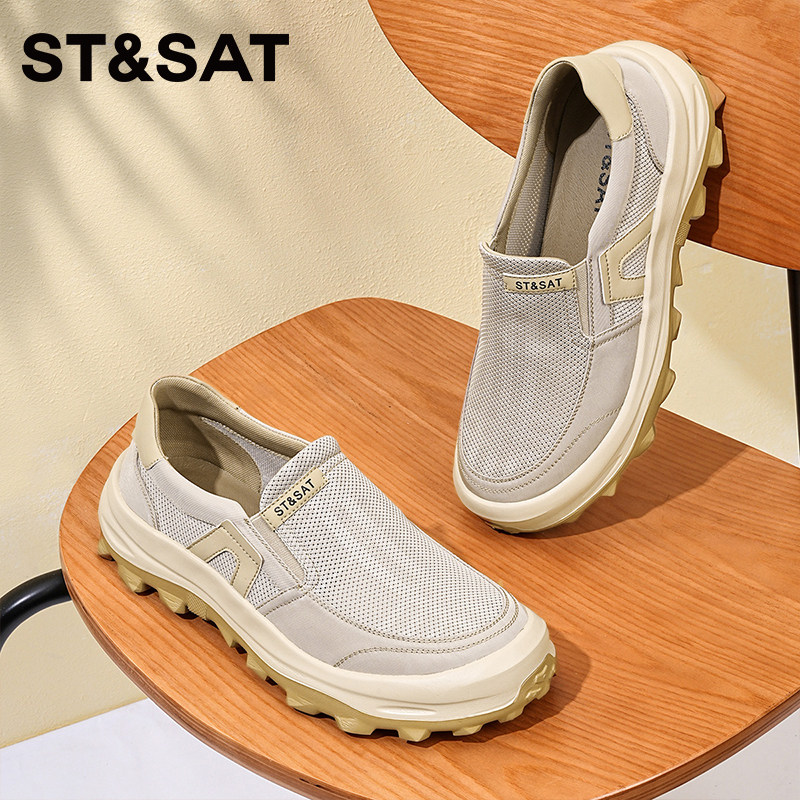星期六男鞋男士帆布鞋夏季透气一脚蹬男厚底轻便男款驾车休闲布鞋