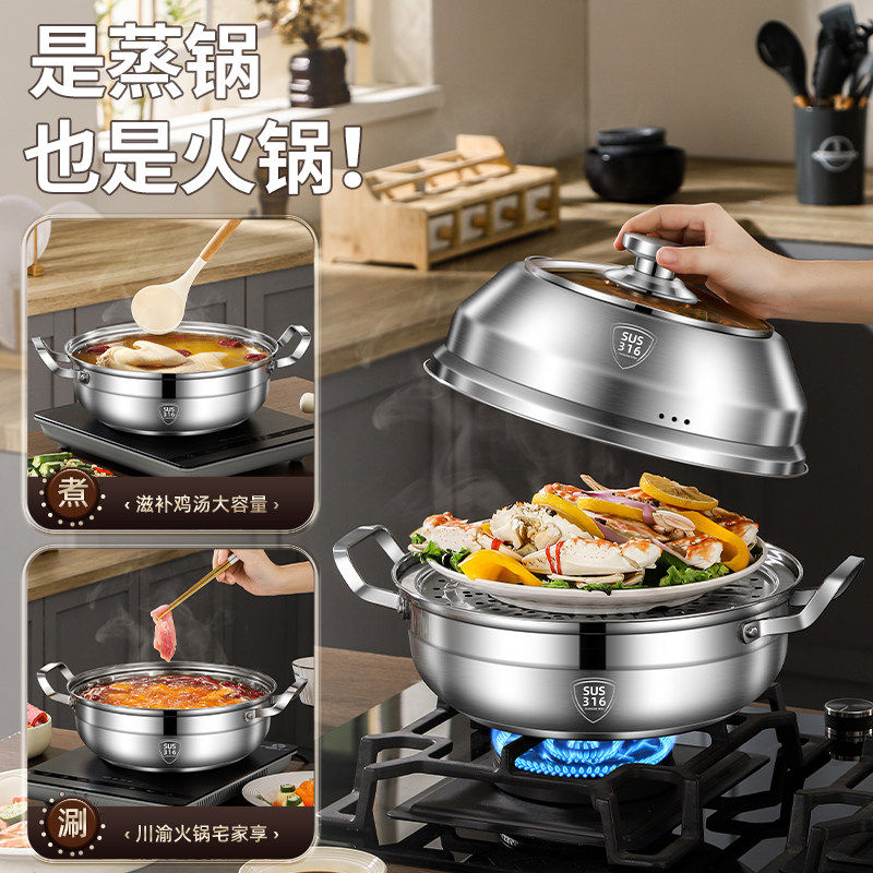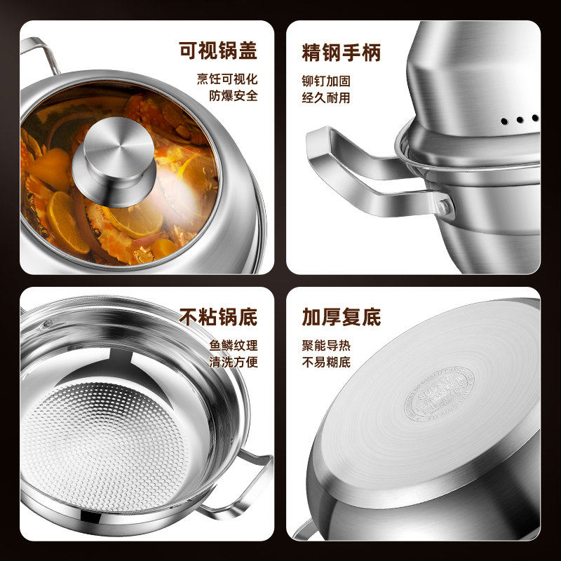 苏泊尔加厚304不锈钢汤蒸锅家用单层蒸锅燃气灶电磁炉蒸煮两用汤I