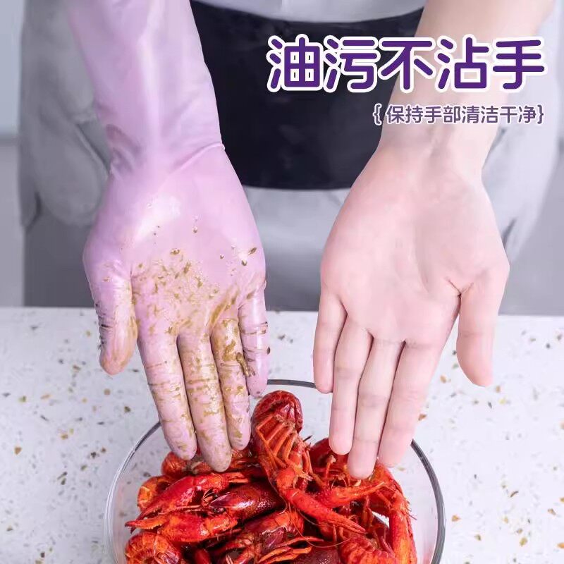 一次性手套加厚长臂女厨房洗碗洗菜家务透明家用卫生餐饮长袖手套