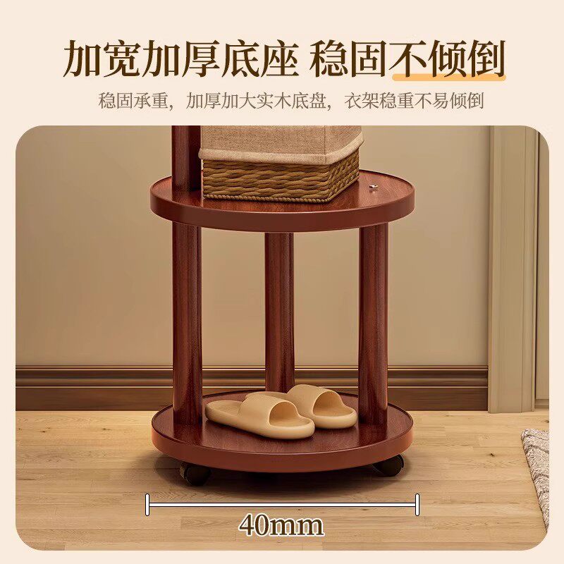 实木可移动衣帽架落地挂衣架卧室角落不占空间脏衣篓小型立式衣架