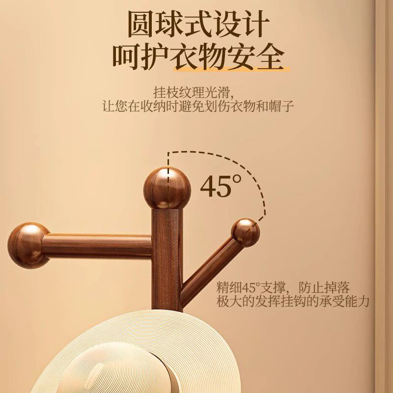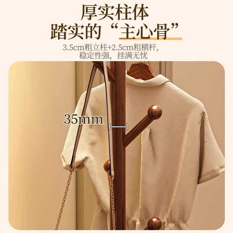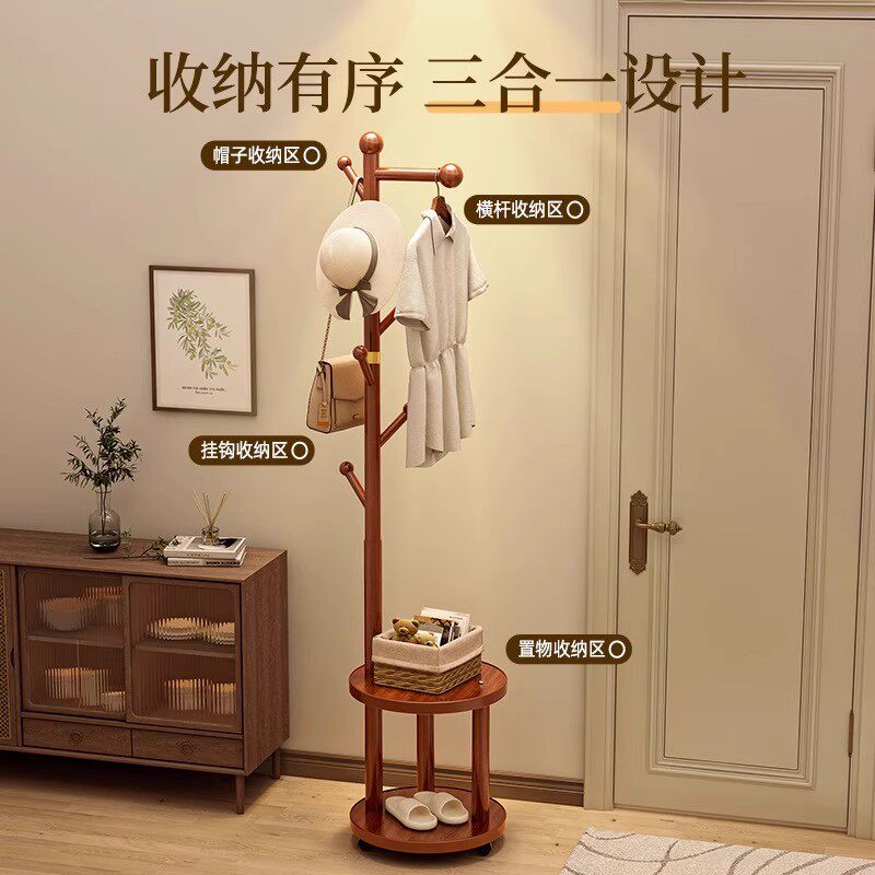 实木衣帽架落地家用玄关挂衣架客厅简易加粗办公室挂包架卧室置物