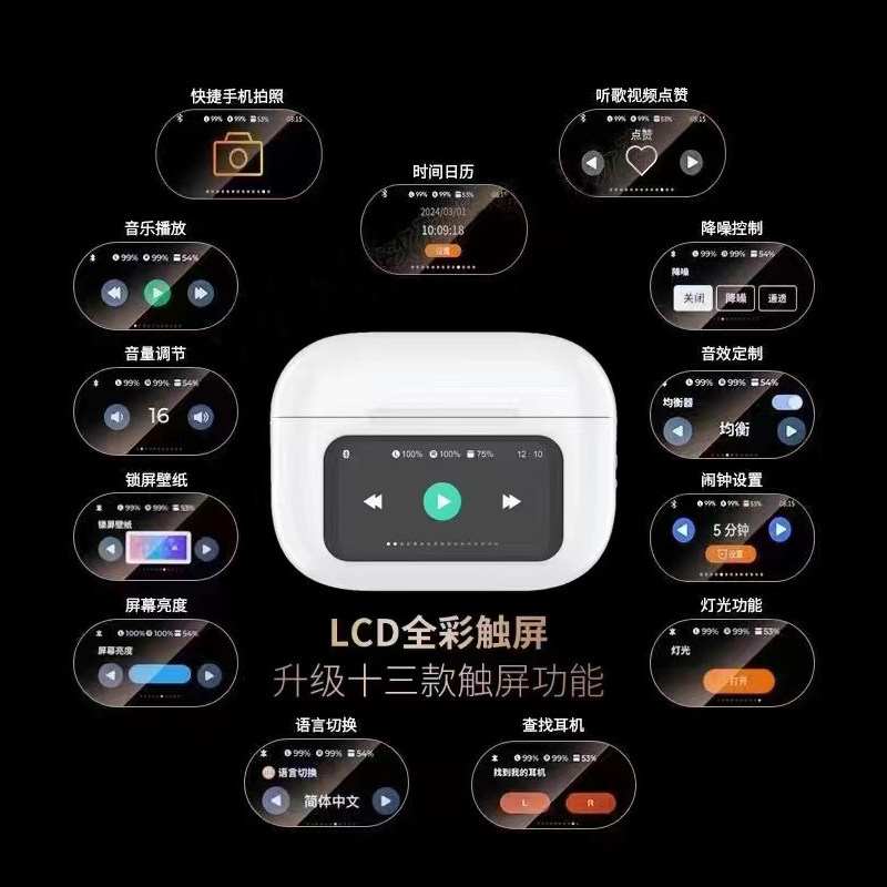 彩屏触摸ANC降噪TWS无线蓝牙耳机带充电仓双耳运动通话听歌耳机