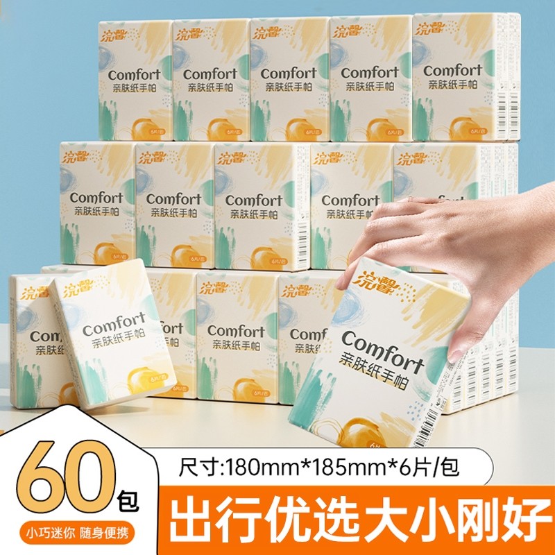 漫花60小包手帕纸随身装卫生纸无香小纸巾便携式纸巾实惠装便携