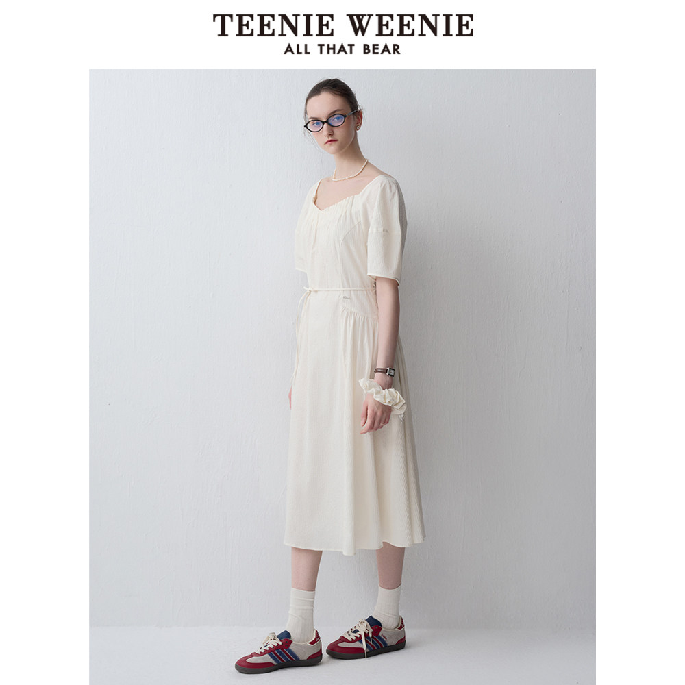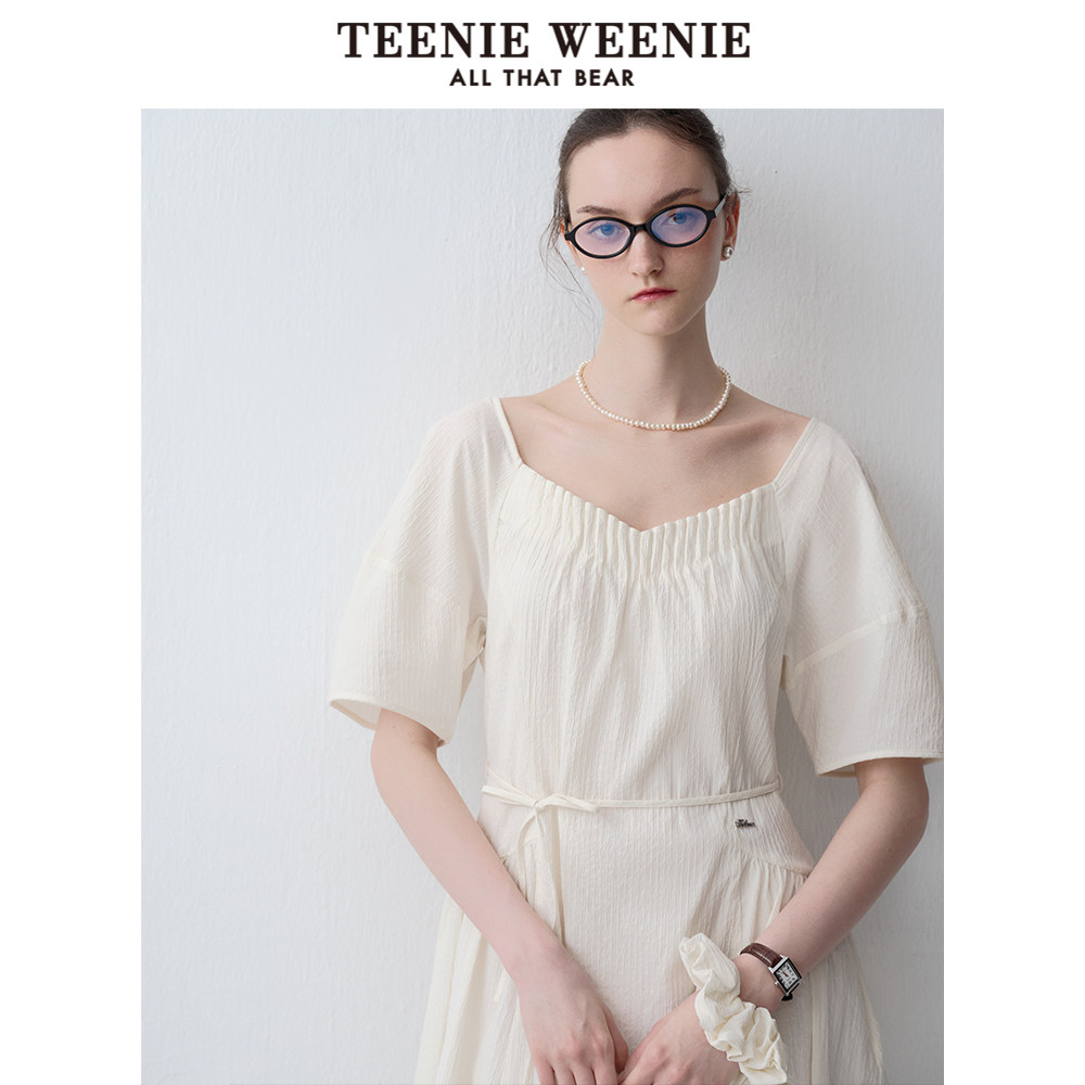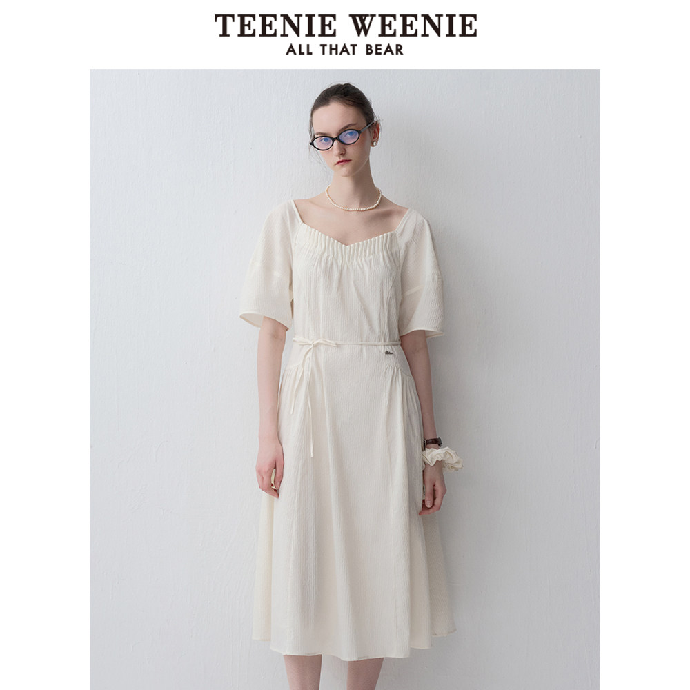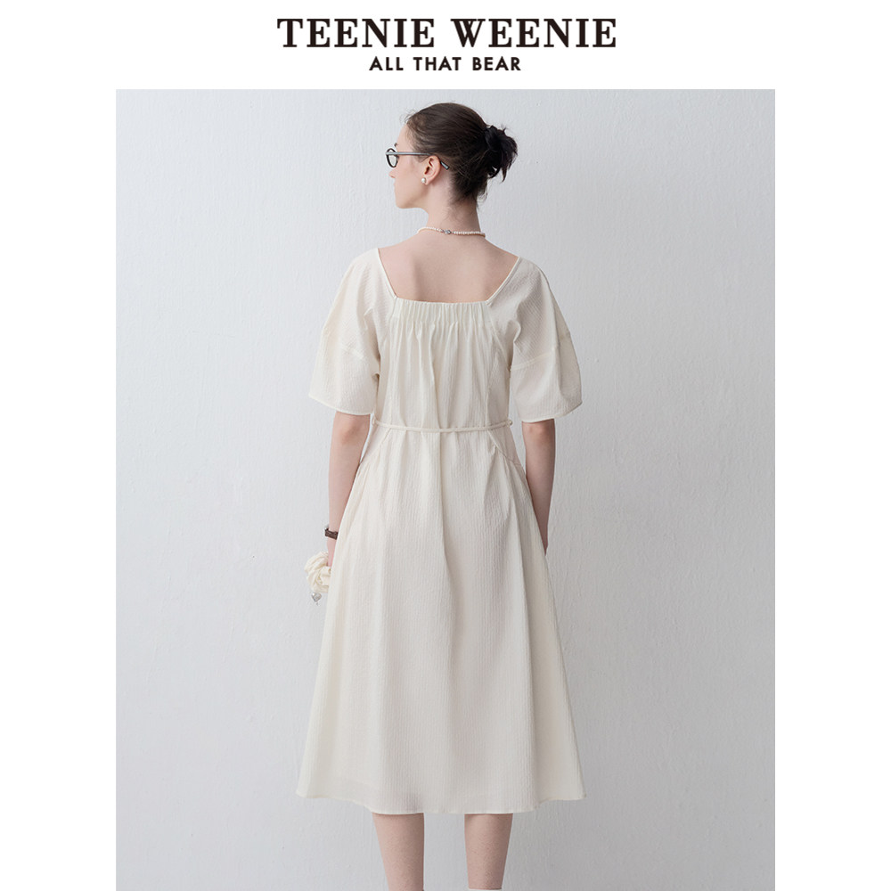 TeenieWeenie小熊奥莱女装夏季宽松肌理方领泡泡袖少女感连衣长裙