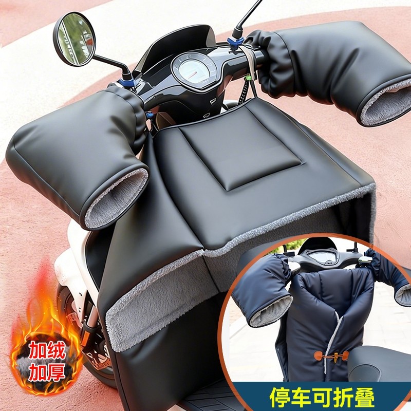 电动车挡风被分体冬季加绒加厚电瓶摩托防水保暖罩PU皮革护腿防风
