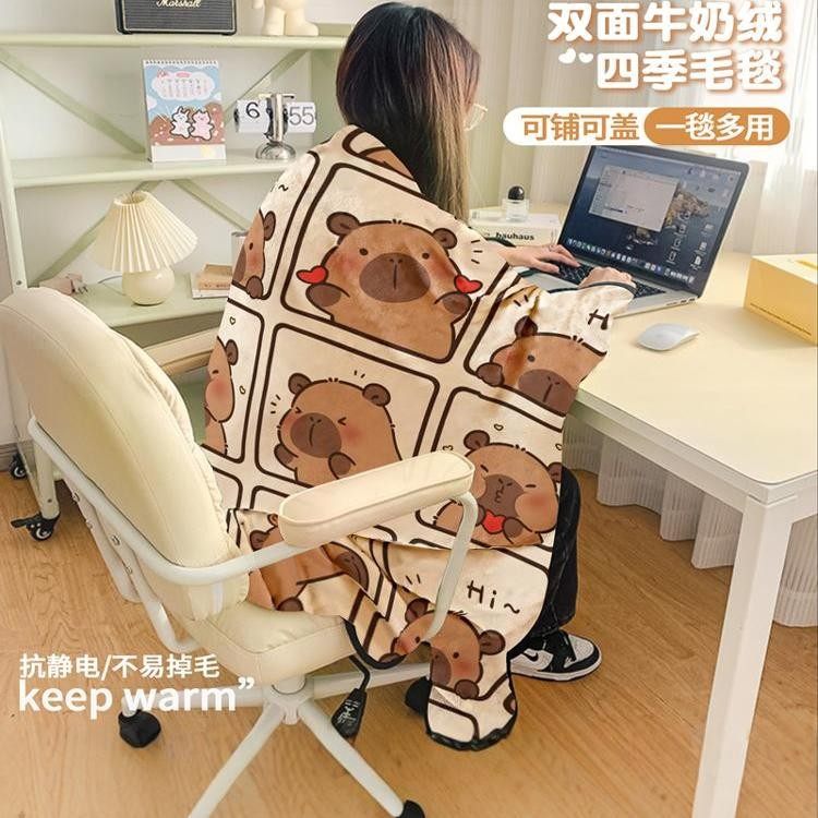 卡皮巴拉网红毛毯冬季加厚小毯子办公室午睡毯珊瑚牛奶绒毯