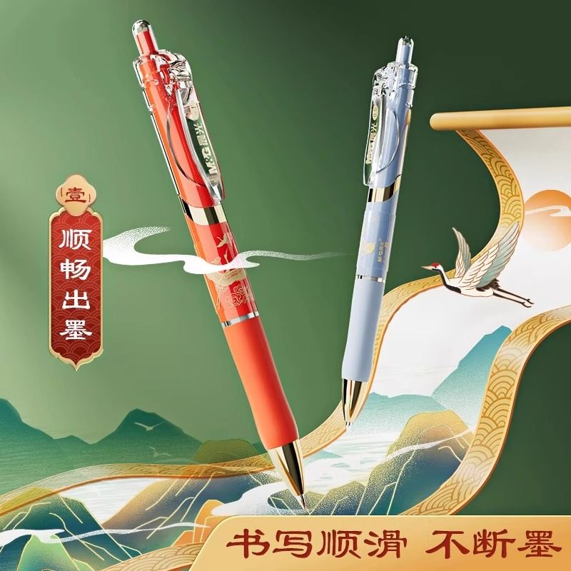 晨光故宫金榜题名联名限定中性笔水笔学生用文具黑色0.5mm考试专用碳素按动签字芯直液式走珠笔好运锦鲤笔