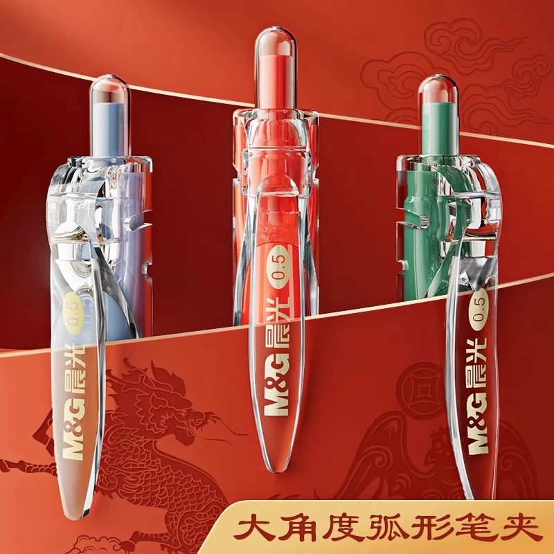 晨光按动中性笔黑色笔速干顺滑高颜值红蓝碳素笔考试办公用签字笔