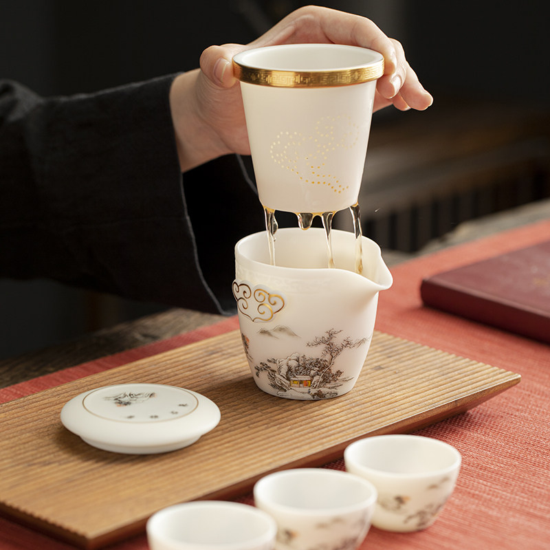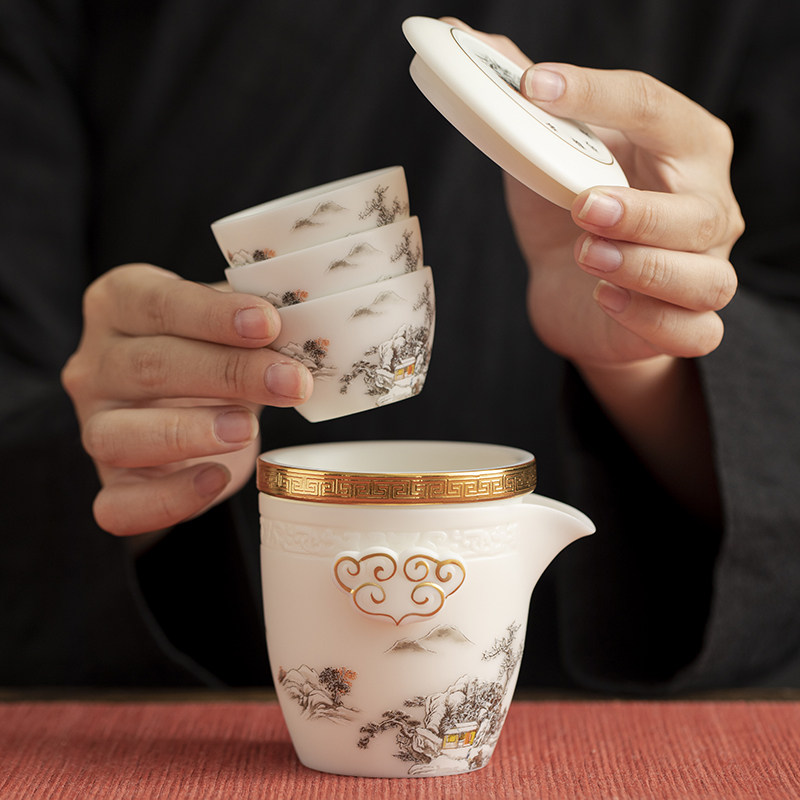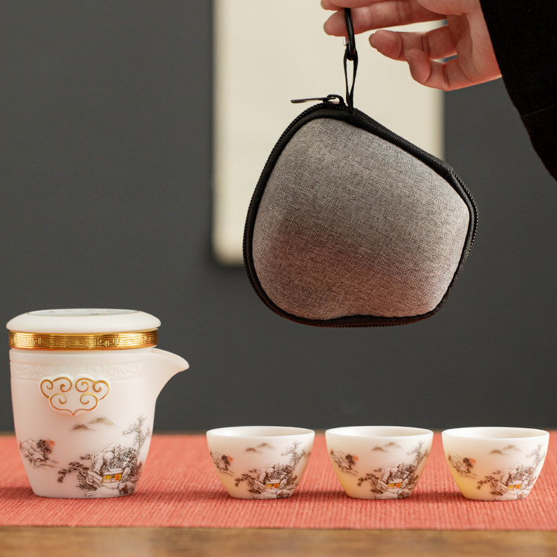 唐舍中国风快客杯一壶三杯旅行茶具套装户外白瓷便携陶瓷泡茶旅游