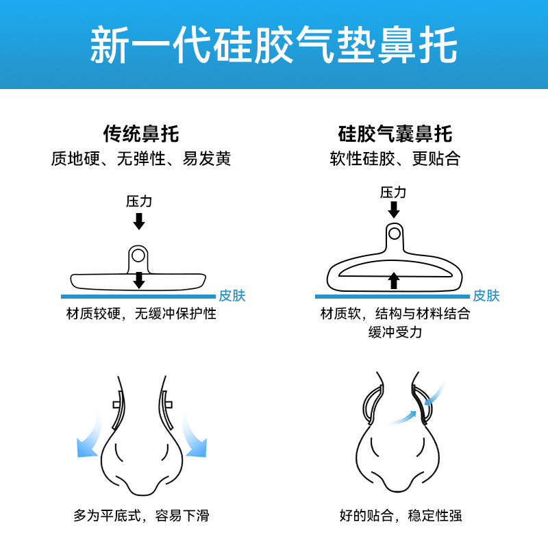 硅胶鼻托防压痕舒适空气果冻防滑鼻梁子气囊眼镜眼睛鼻垫配件神器