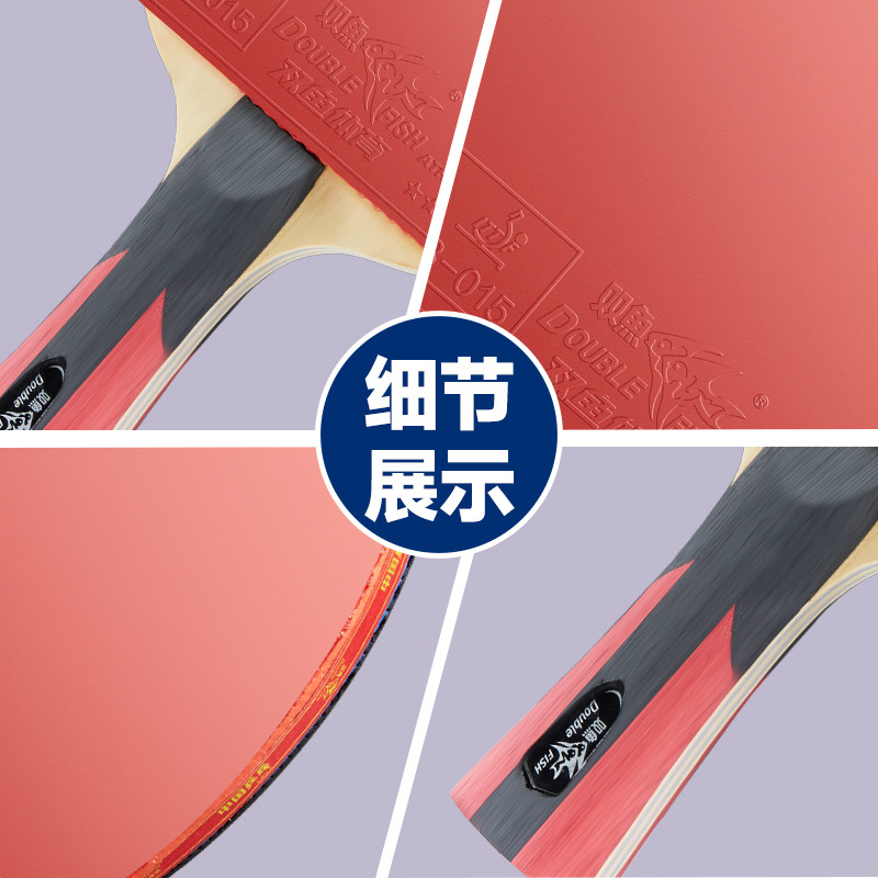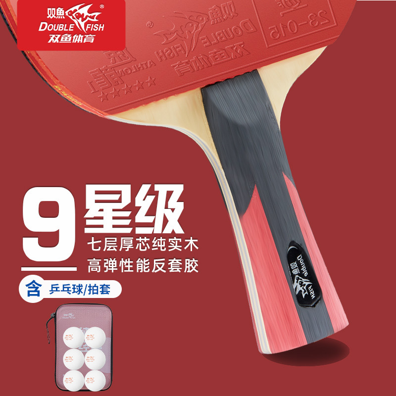 双鱼九乒乓球拍7层双面反胶长短柄横直拍初学者高弹专业底板星级