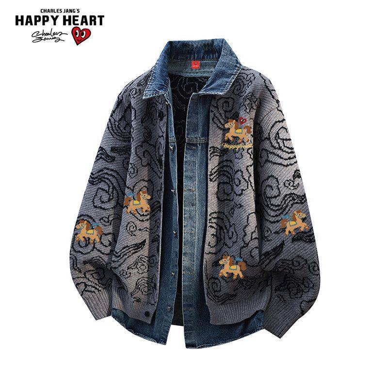 查尔斯桃心马年2026新款开衫毛衣男女冬季保暖休闲拼接假两件外套