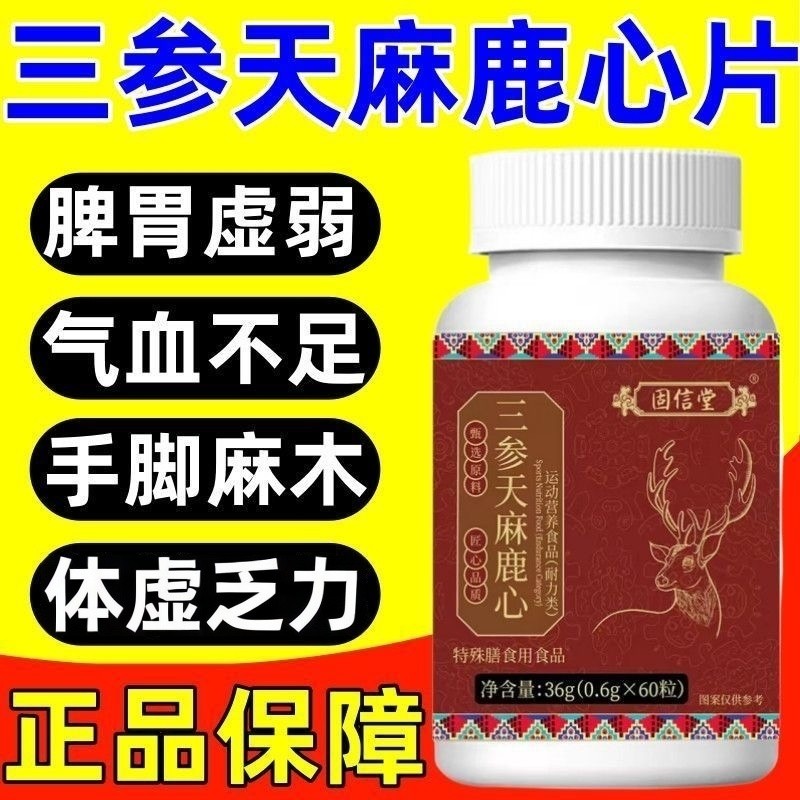 三参天麻鹿心片官方旗舰店正品草本植萃脾胃虚弱气虚乏力直播同款