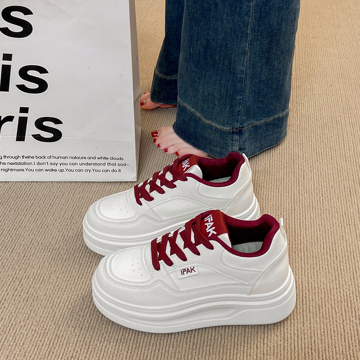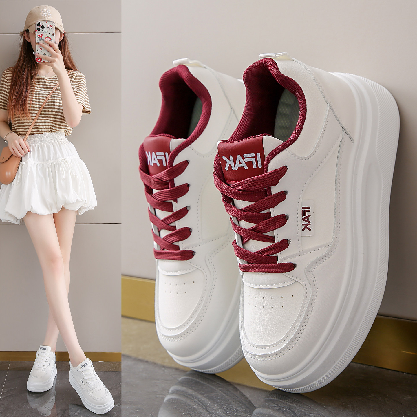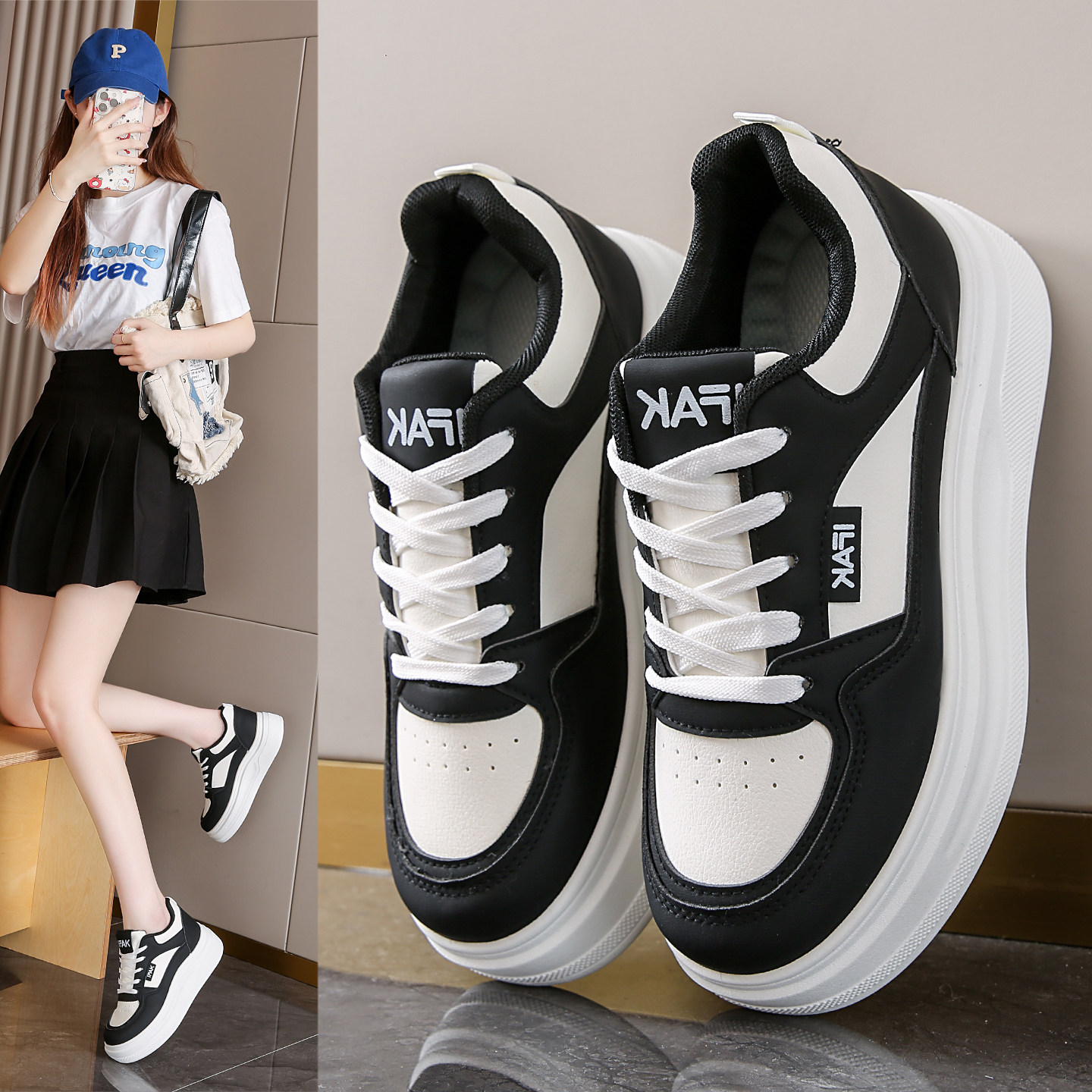 蜘蛛王内增高真皮小白鞋女6CM小个子厚底增高板鞋2025新款小码女