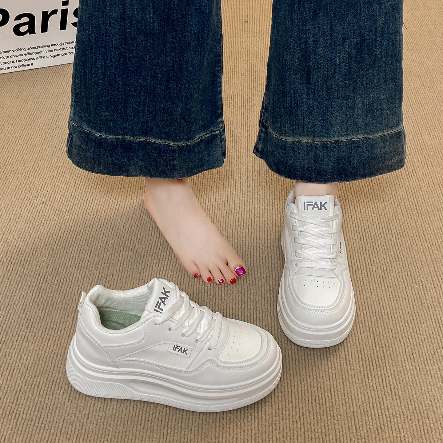 Pansy盼喜小白鞋日本女鞋休闲百搭厚底轻便舒适板鞋2025年秋冬款