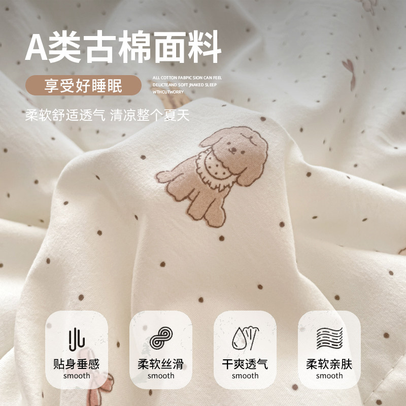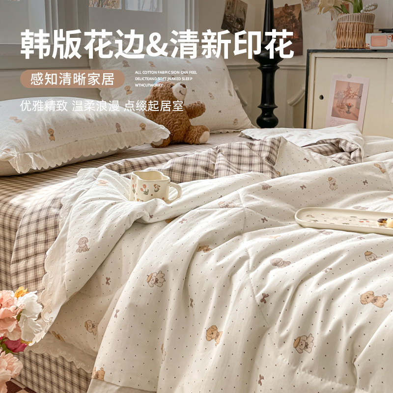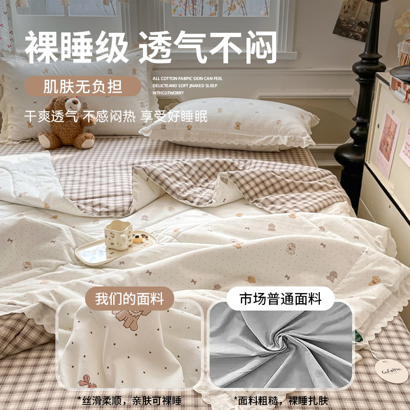 A类全棉双层纱夏凉被四件套空调被可机洗薄款被子夏季夏被三件套4