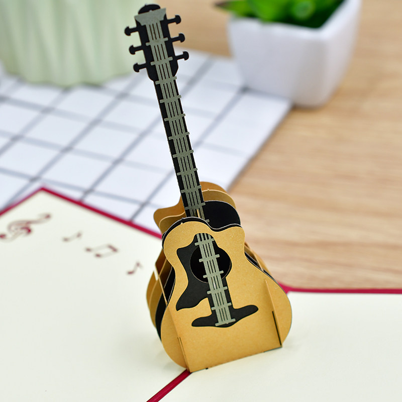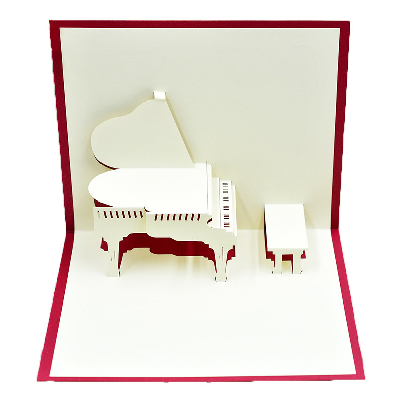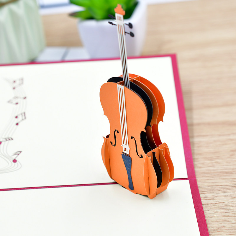 3D立体钢琴吉他小提琴造型乐器手工剪纸小贺卡片节日生日祝福礼物