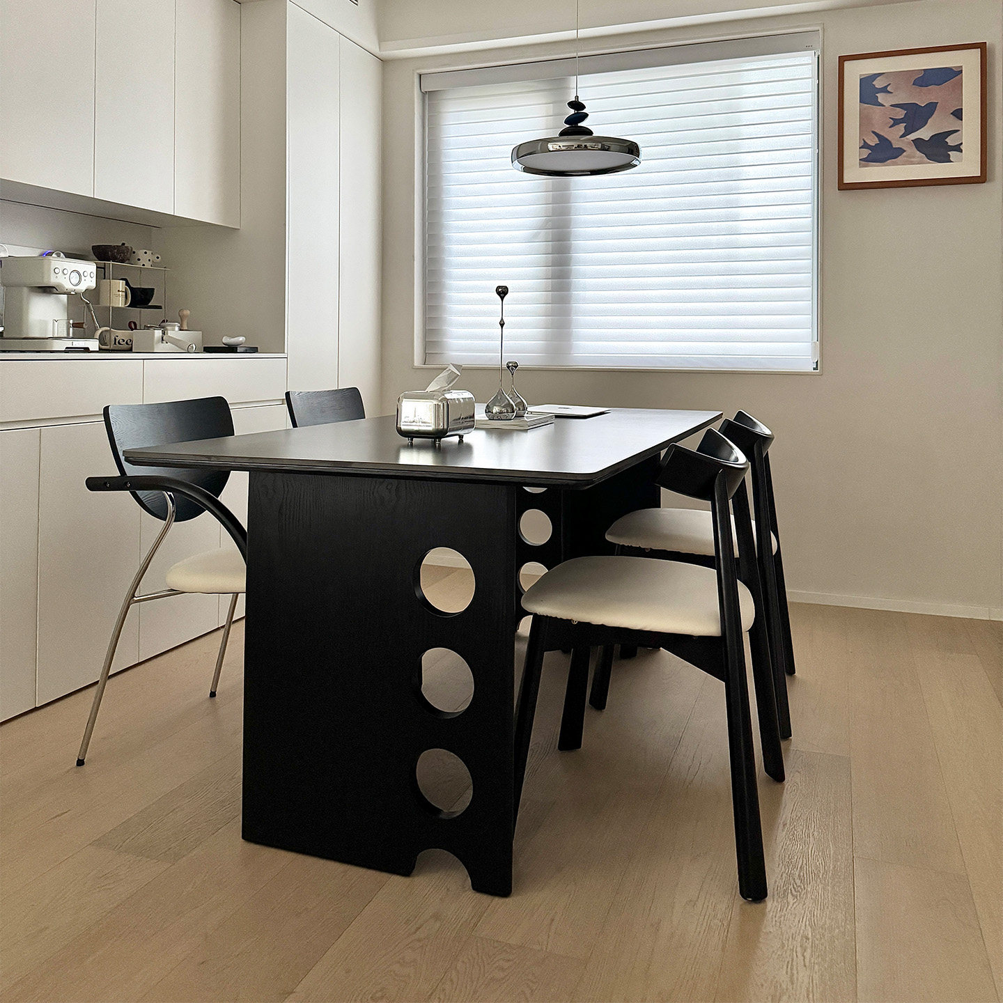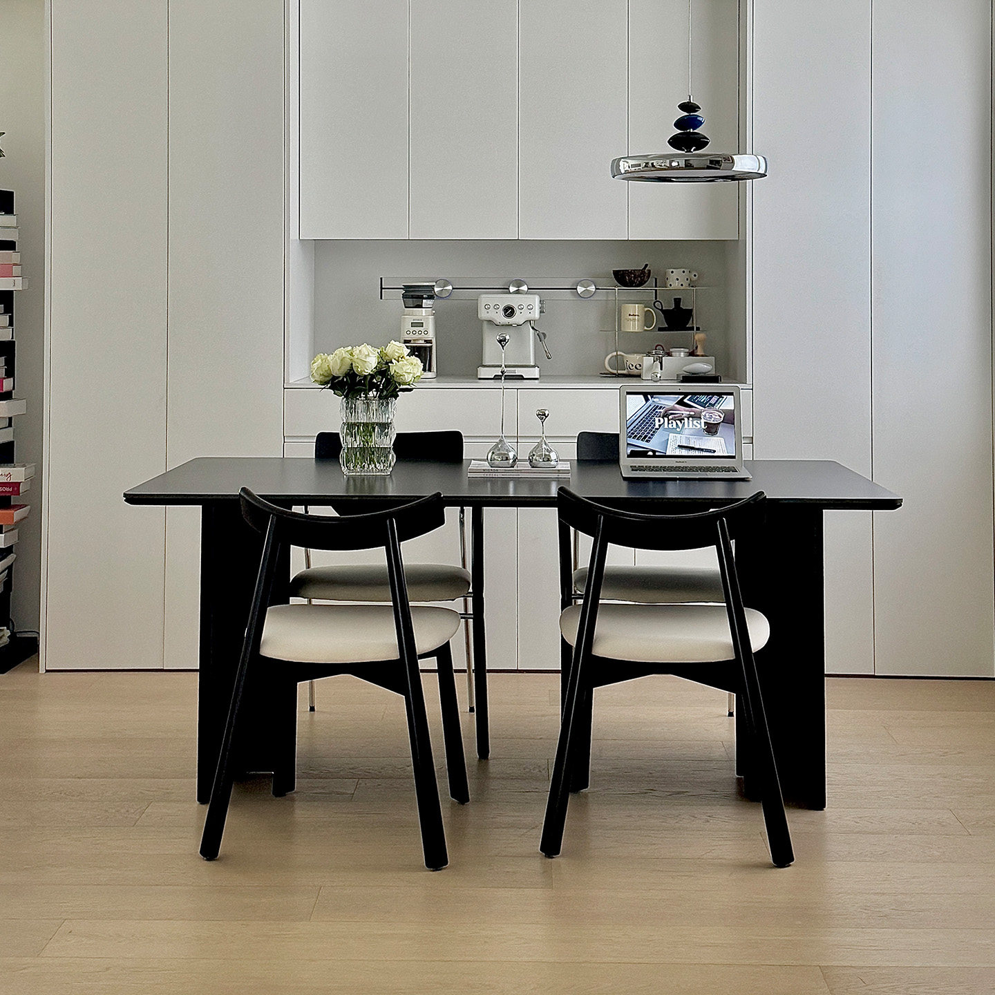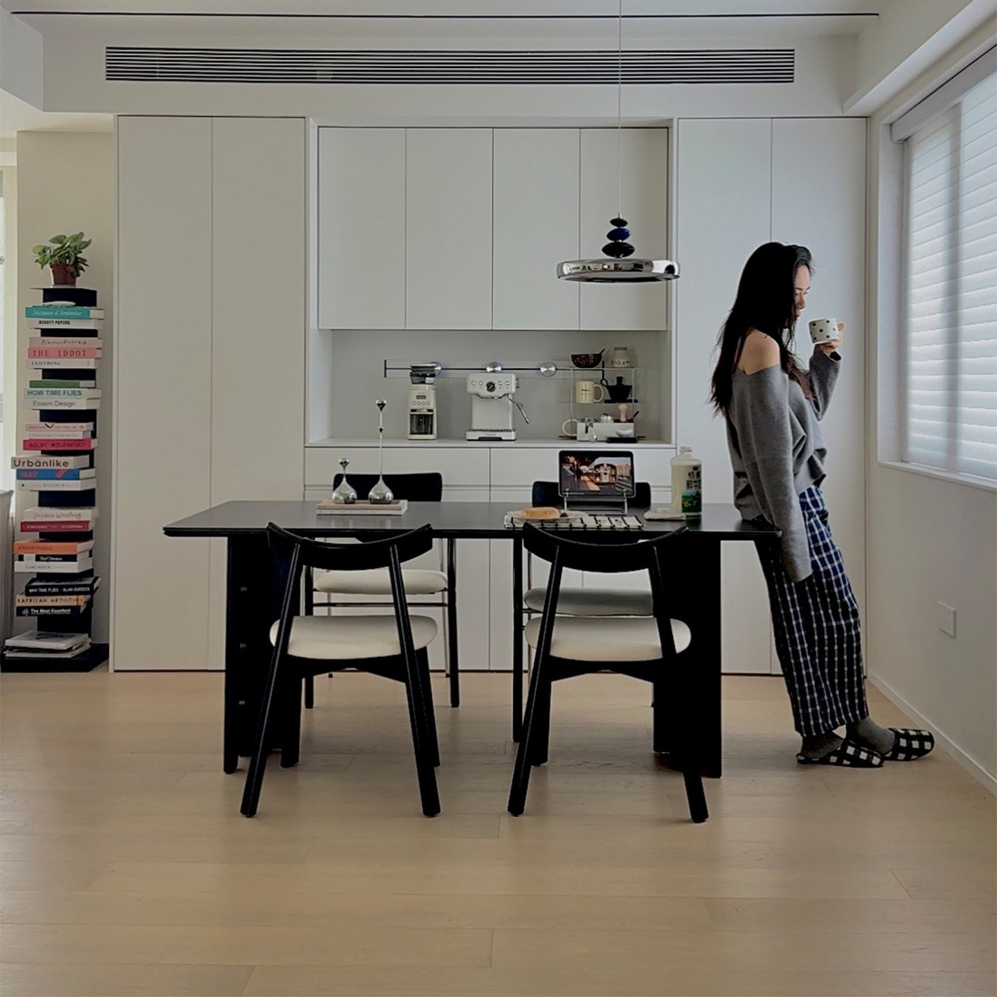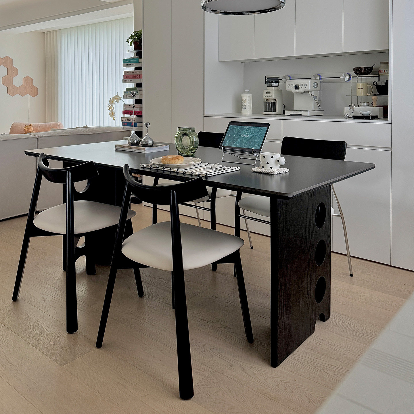 黑色实木餐桌长方形全托饭桌现代简约2025新款小户型哑光岩板餐桌
