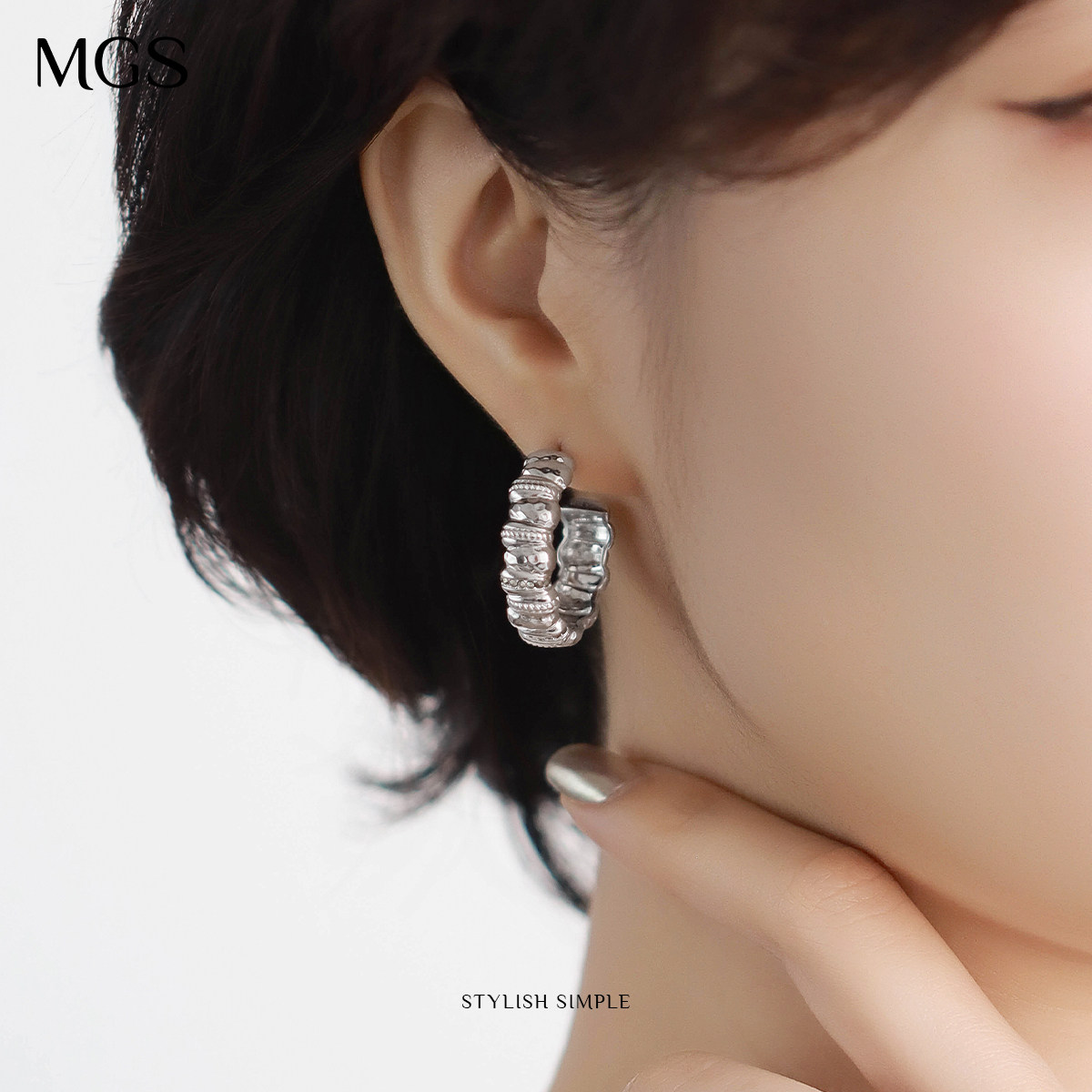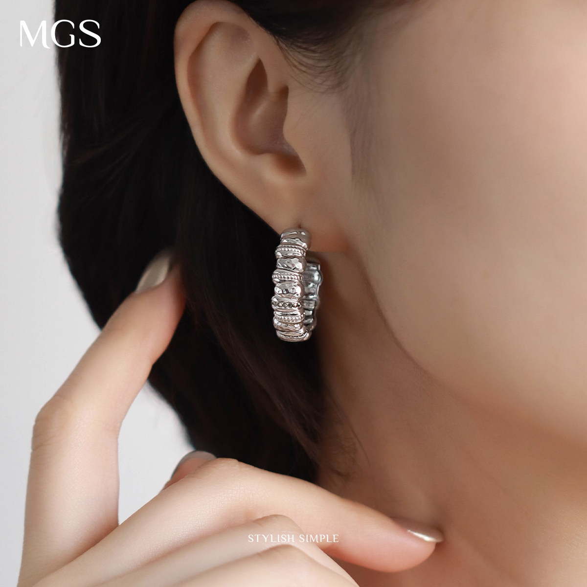 MGS/曼古银织梦复古锤纹2025新925银耳环轻奢高级感小众设计耳饰