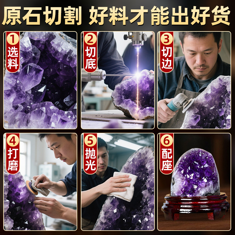 天然紫水晶洞摆件招财镇宅帝王紫晶簇乌拉圭紫水晶消磁石聚宝盆