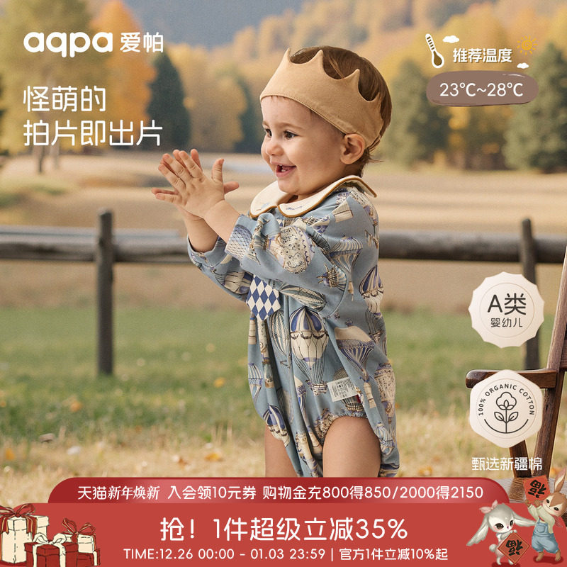 [璀璨蓝宝石]aqpa爱帕宝宝长袖包屁秋冬连体衣婴幼儿包屁衣长袖