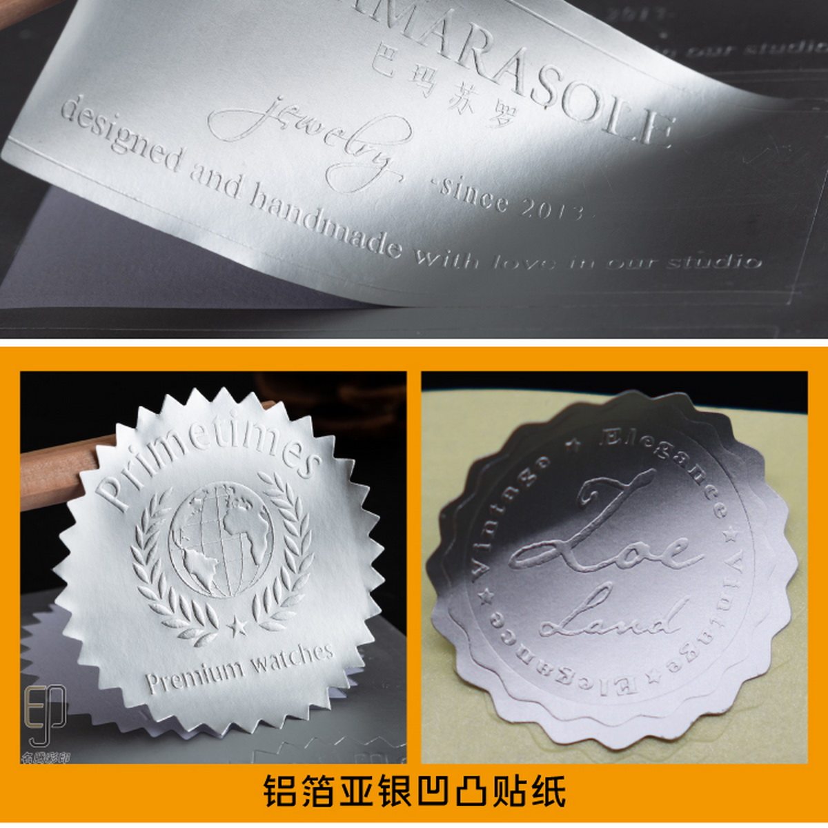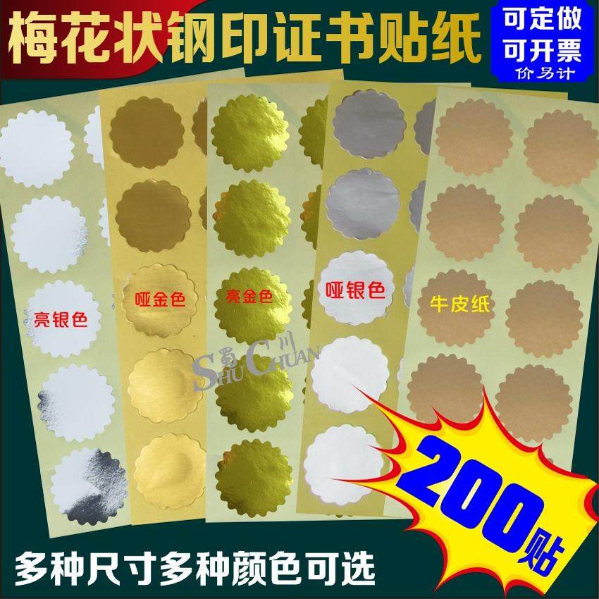 梅花形状钢印贴纸铜印徽章贴亚金亚银亮金亮银多色雕刻证书奖状贴