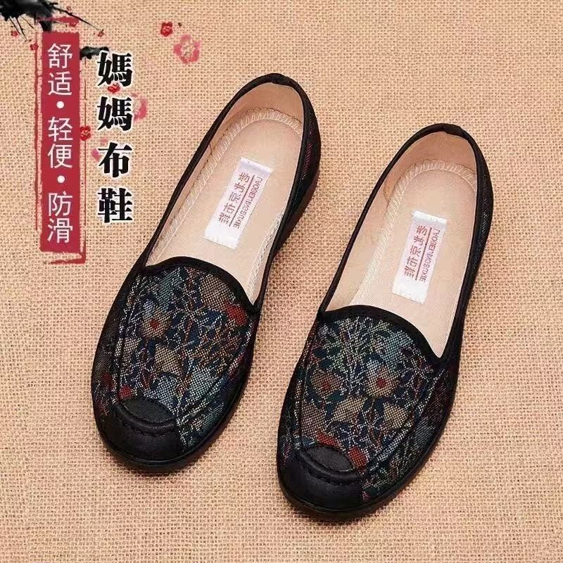 老北京布鞋春夏女款防滑老年人复古绣花奶奶鞋大脚骨宽松老太太鞋