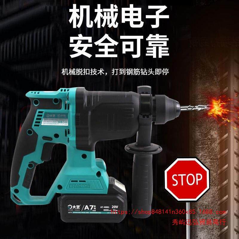 大艺电锤A7-6609锂电冲击钻大功率混凝土电镐三用无刷电锤充电式