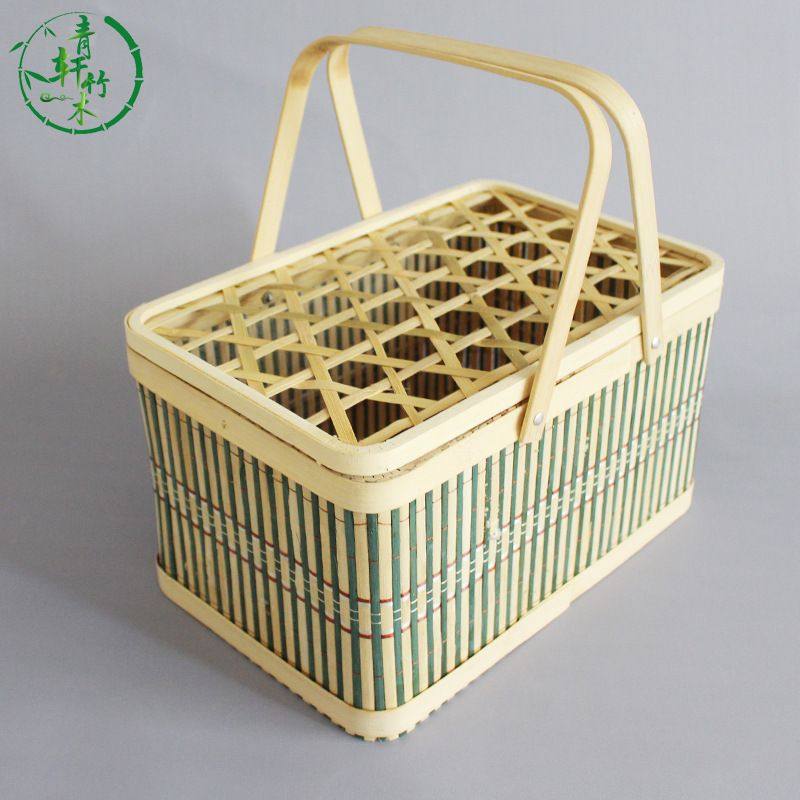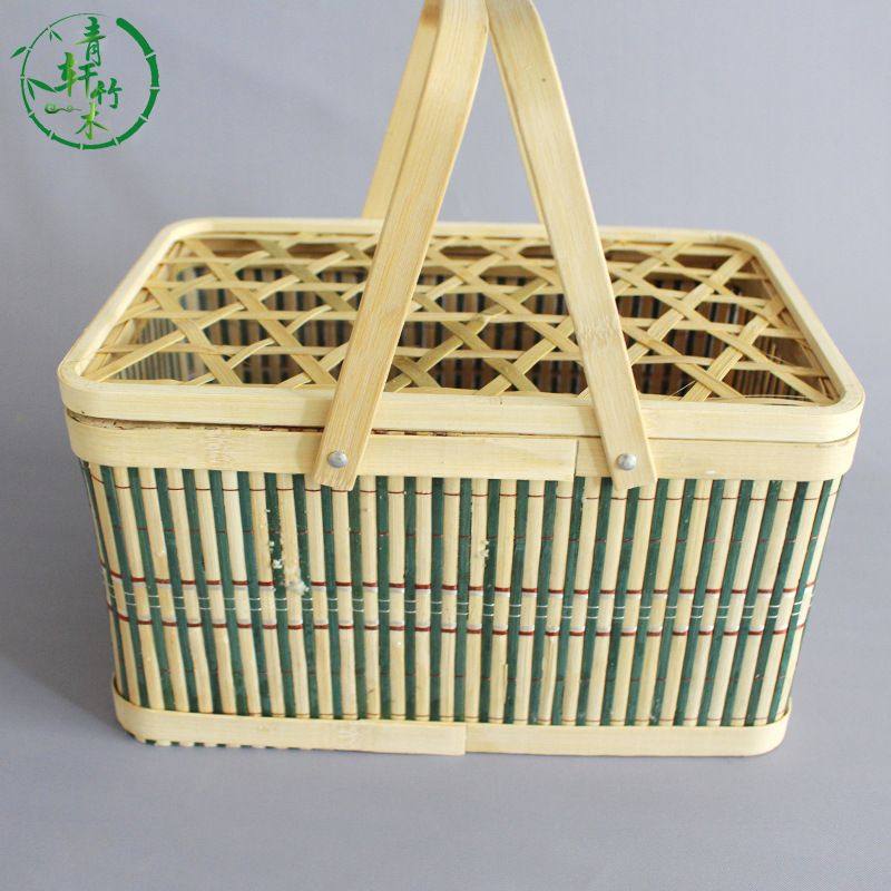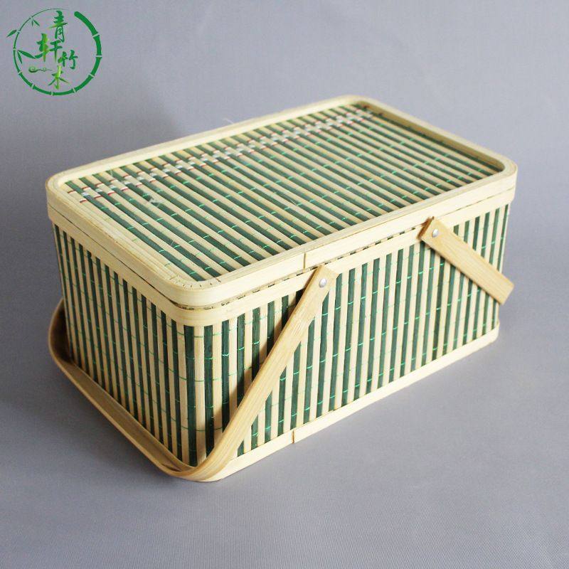 绿色长方形元旦春节竹篮鸡蛋篮水果篮大闸蟹包装手提篮子水果礼盒