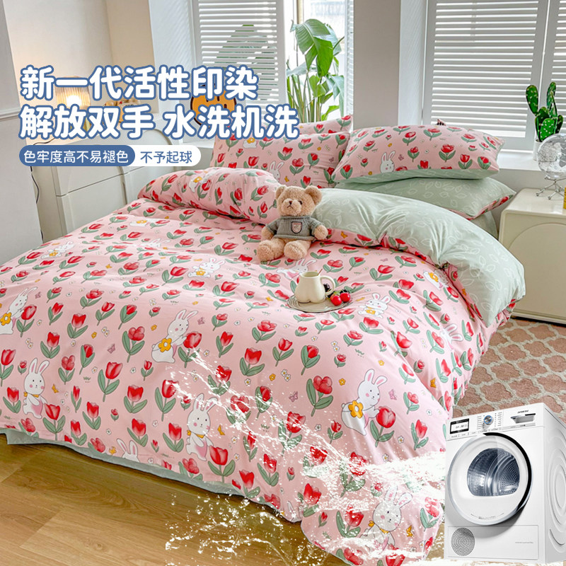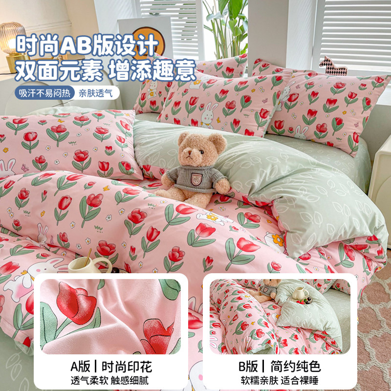 水洗棉被套单件150x200x230单人学生宿舍被罩三件套儿童被单草莓