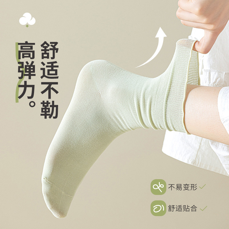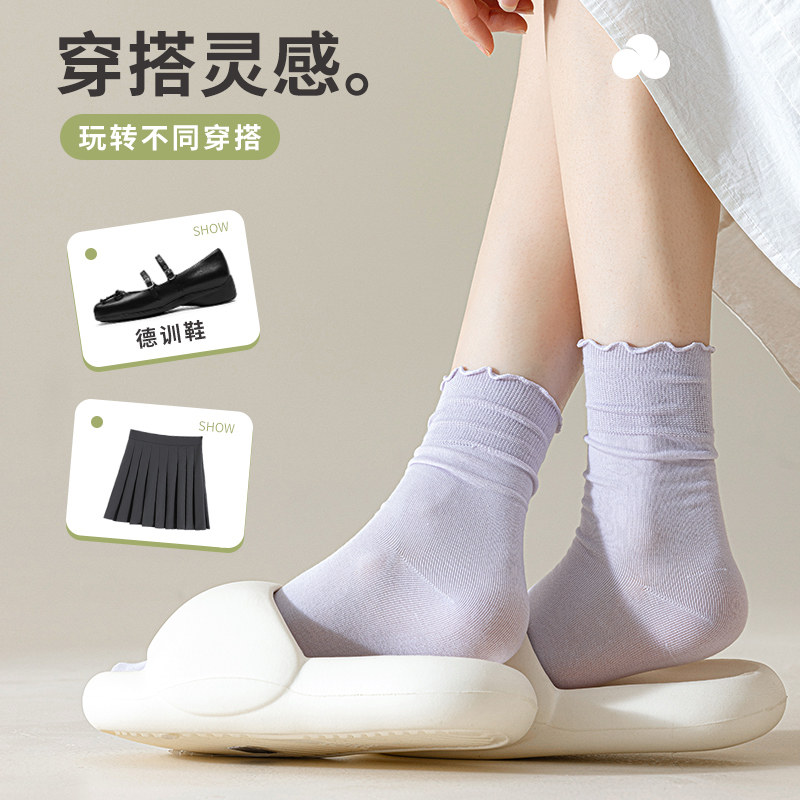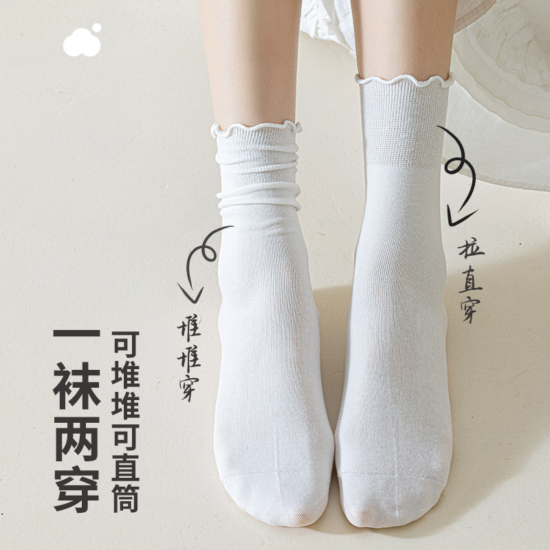 堆堆袜子女夏季薄款纯棉无骨月子袜夏天吸湿透气木耳花边中长筒袜