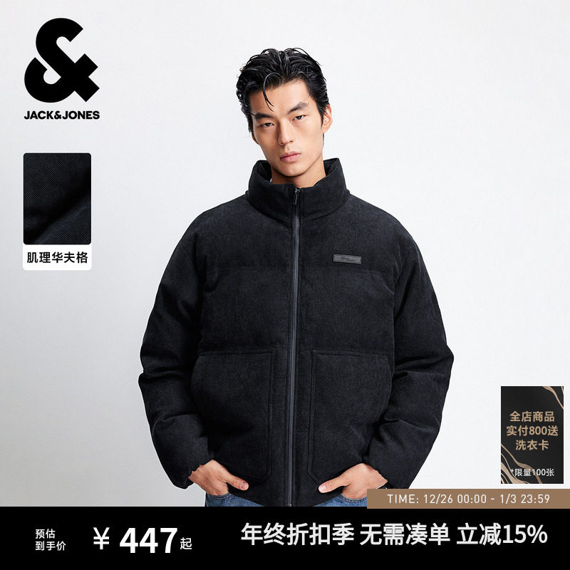 杰克琼斯男装秋冬新款肌理华夫格休闲宽松立领棉衣男款棉服外套