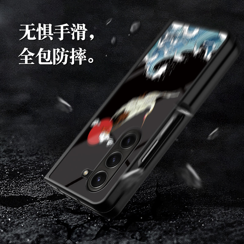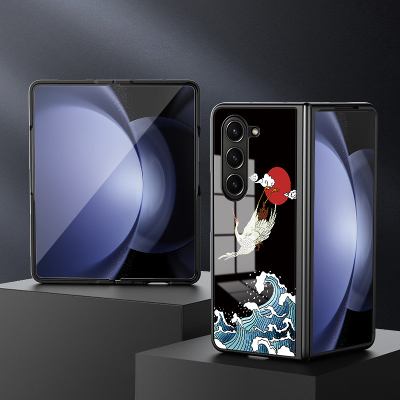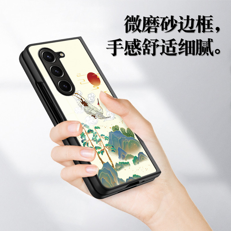适用三星zfold5手机壳可折叠屏超薄新款玻璃全包防摔Galaxy Z Fold5保护套男高档创意中国风复古飞鹤网红男款