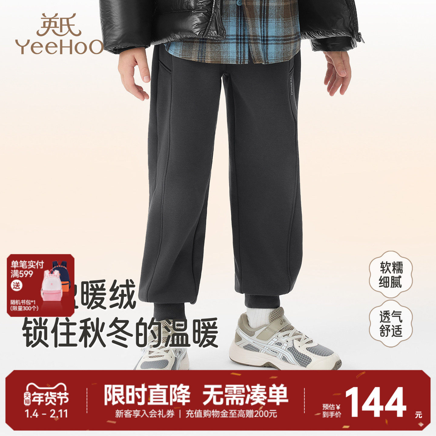 [一体绒]英氏儿童秋冬卫裤远红外发热保暖男童运动长裤春秋款裤子