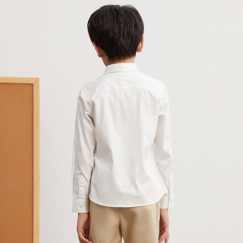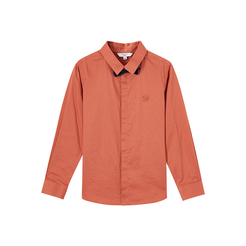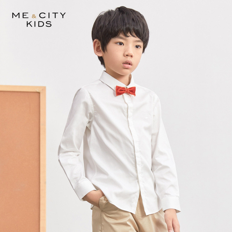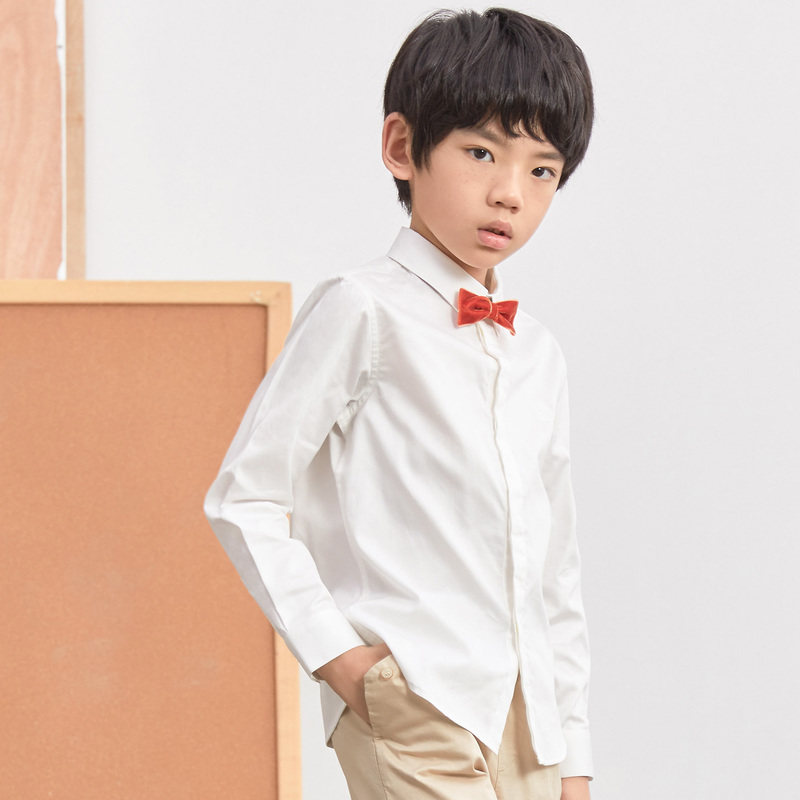 米喜迪童装春男纯色领结装饰演出服长袖衬衫内搭薄款全棉舒适衬衣
