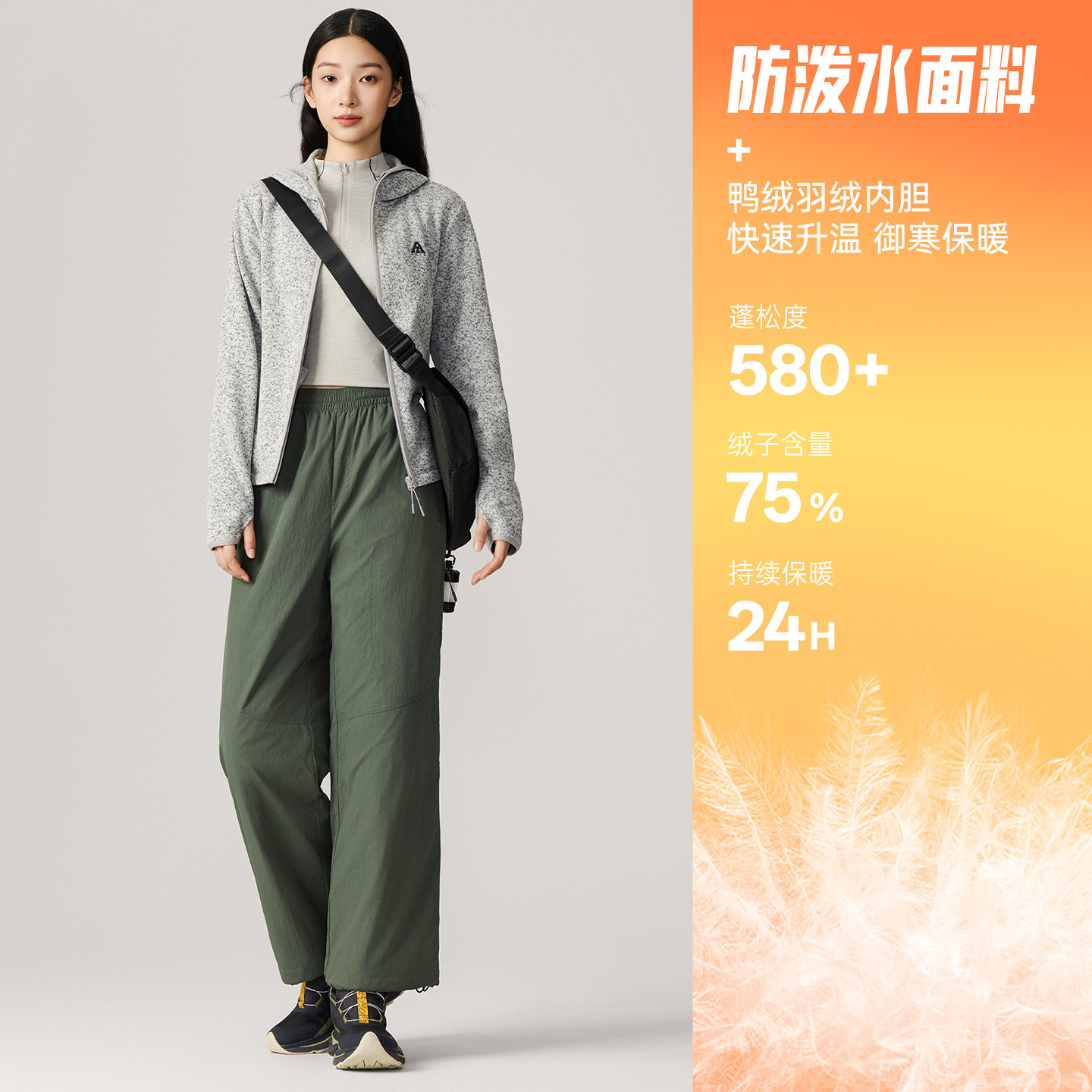 安踏山壳羽绒裤丨大地之壳3.0户外直筒裤女裤冬季阔腿裤子加绒裤