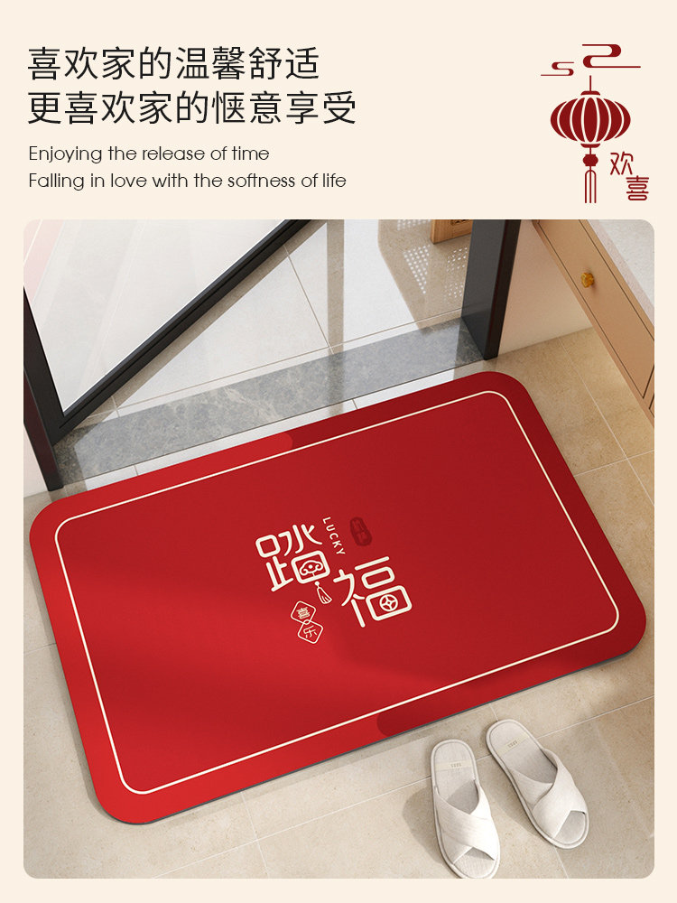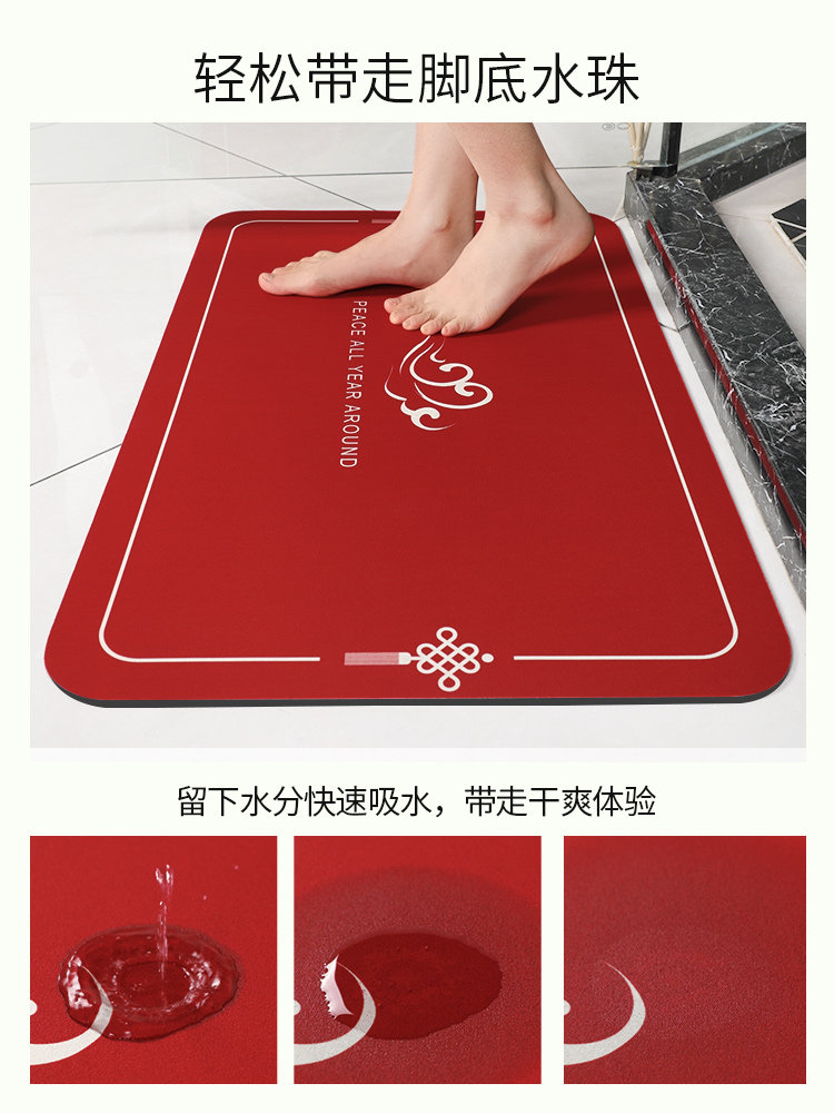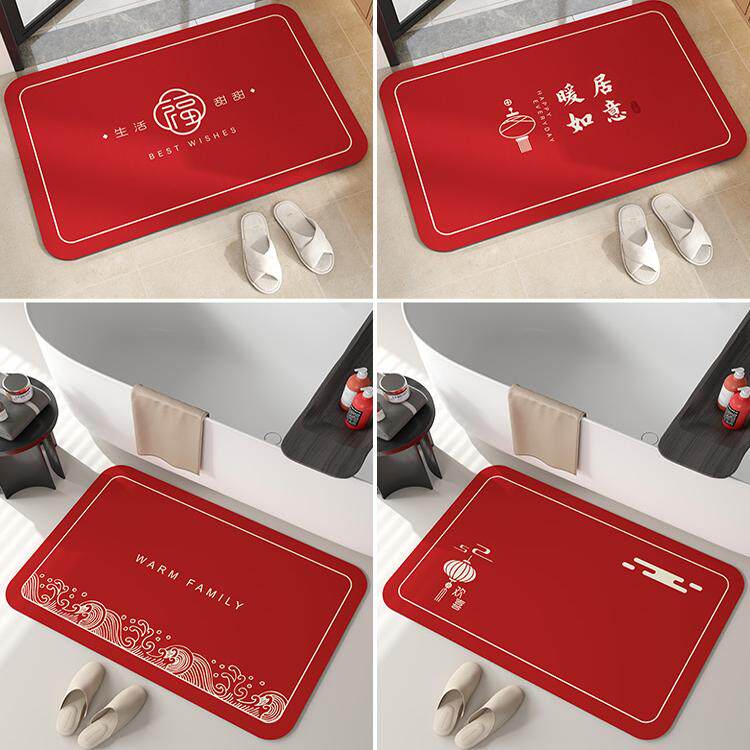 硅藻泥吸水垫卫生间地垫新年红色浴室门口防滑脚垫厕所洗手间地毯