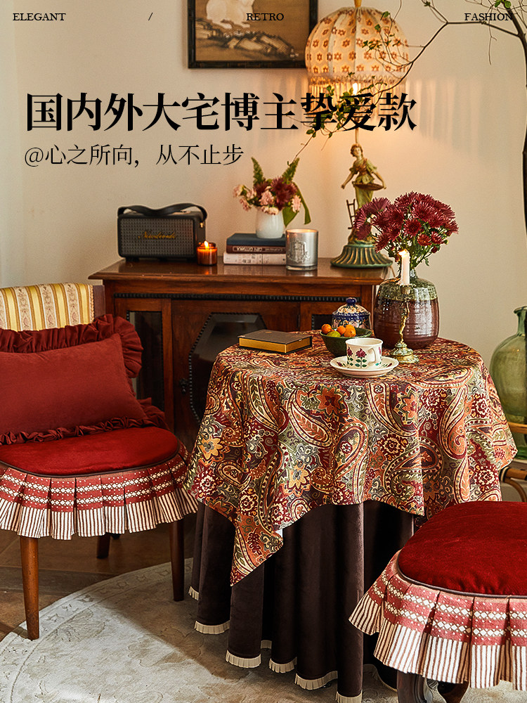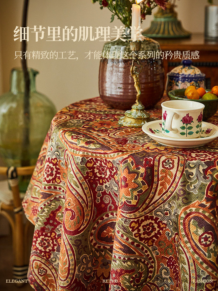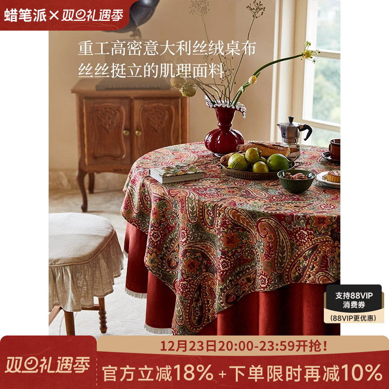 蜡笔派巴塞罗那桌布新年红色婚庆氛围感圆桌餐桌盖布长方形茶几布