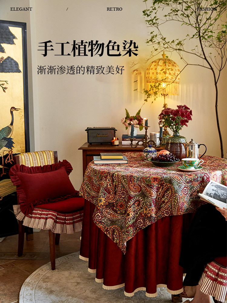 轻奢高级红色婚庆氛围感圆桌餐桌盖布