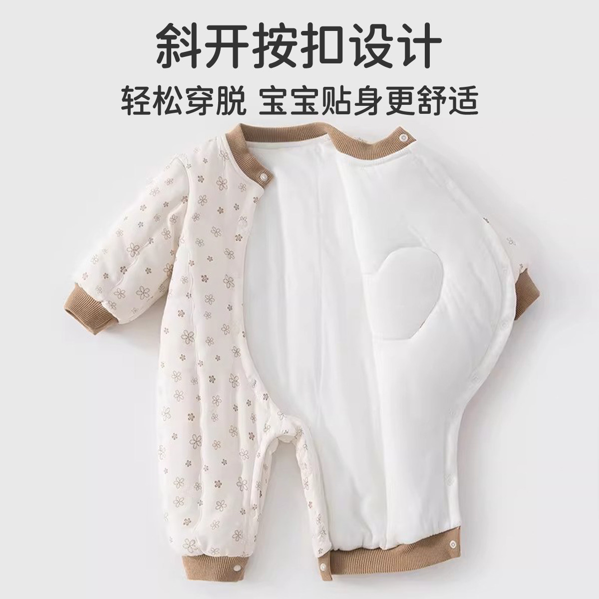 贝肽斯婴儿薄夹棉连体衣冬装外出新生幼儿宝宝衣服保暖空气棉睡衣