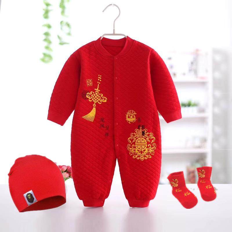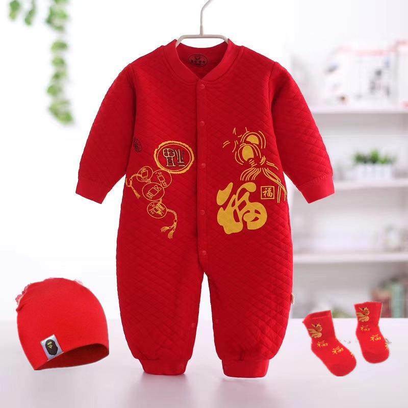 过年童泰婴儿保暖秋冬连体衣红色哈爬宝宝喜庆满月百天服0-1岁衣