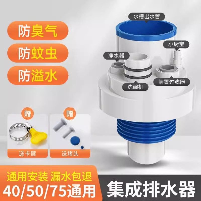 厨房下水管三通洗菜盆洗碗池水槽五通净水器排水管道防返臭分水器