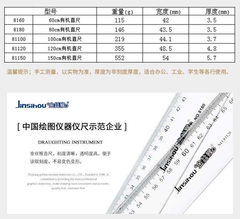 有机玻璃直尺长1米1.5米80 100 120厘米1.25透明塑料尺子20-60cm
