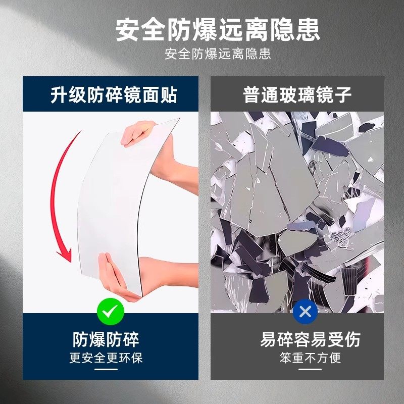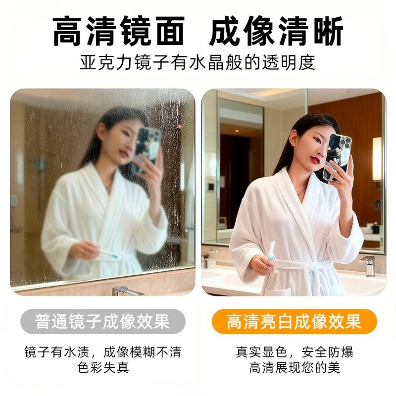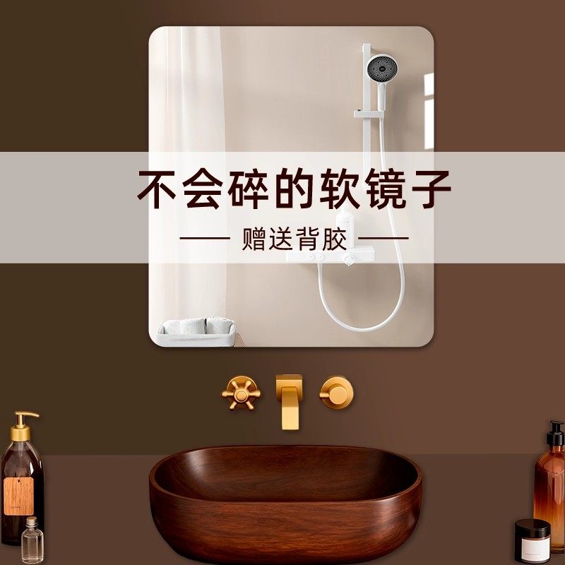 软镜子贴墙自粘亚克力家用浴室化妆镜全身镜免打孔卫生间大梳妆镜
