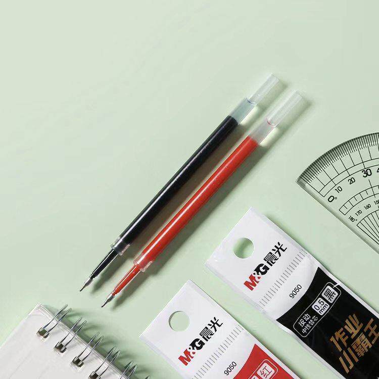 晨光作业小霸王按动中性笔加强全针管668笔芯0.5mm黑色红替芯9050