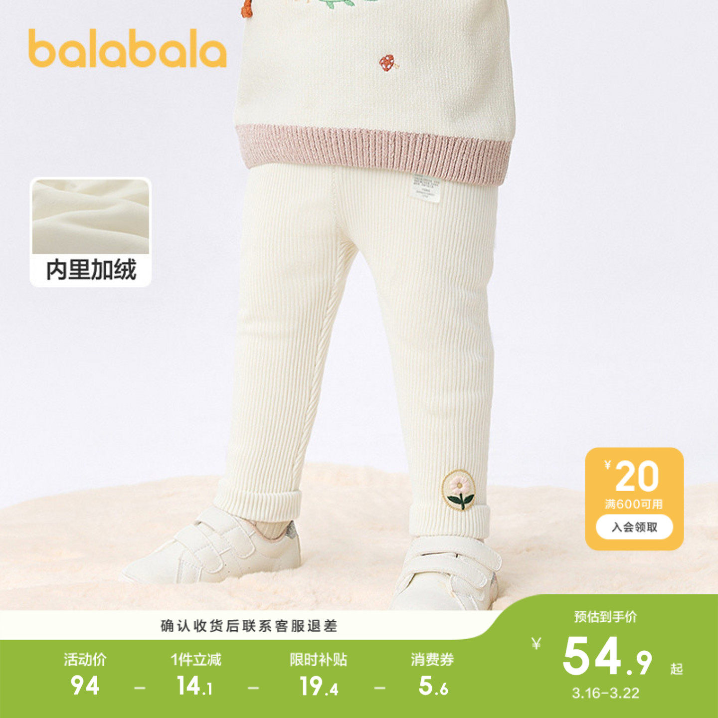 巴拉巴拉童装婴儿长裤加绒打底裤女童宝宝裤子2026秋冬装休闲保暖