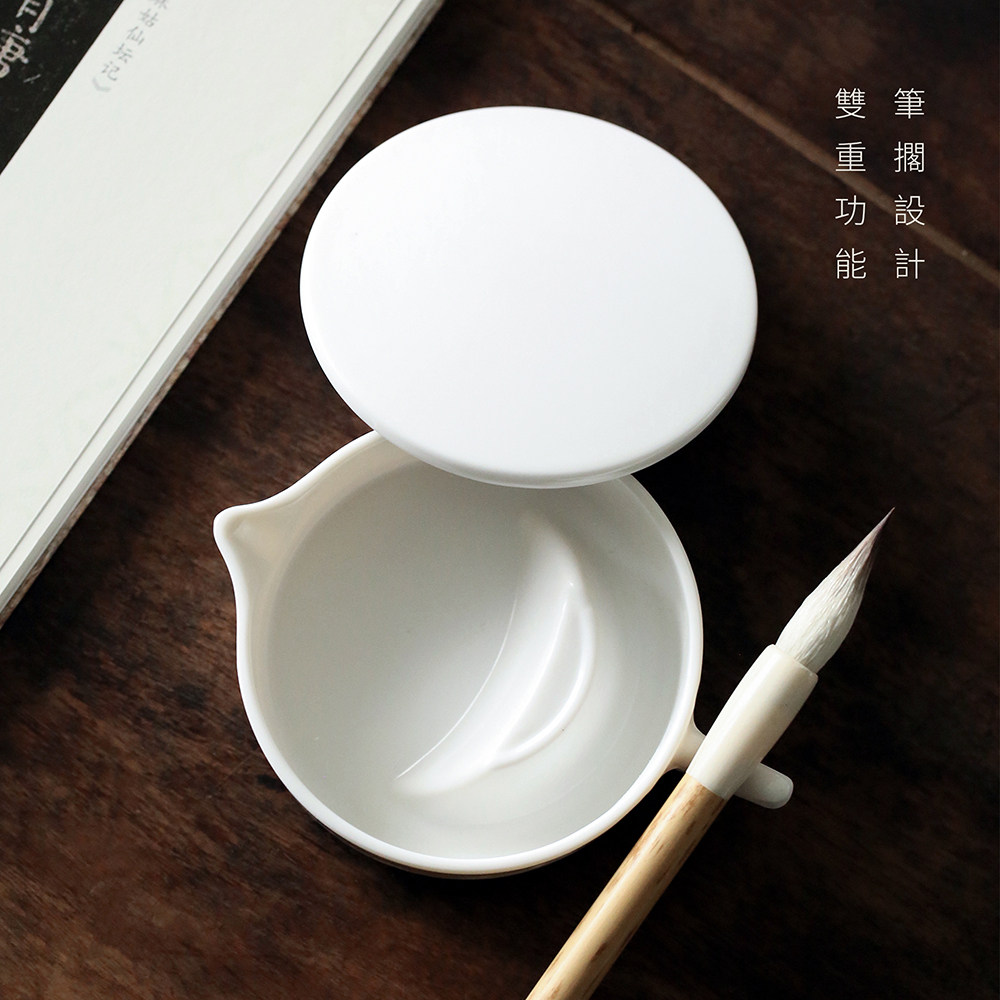 问心堂白墨盒带盖墨碟笔搁笔掭墨盒砚台墨池书法国画专用文房用品