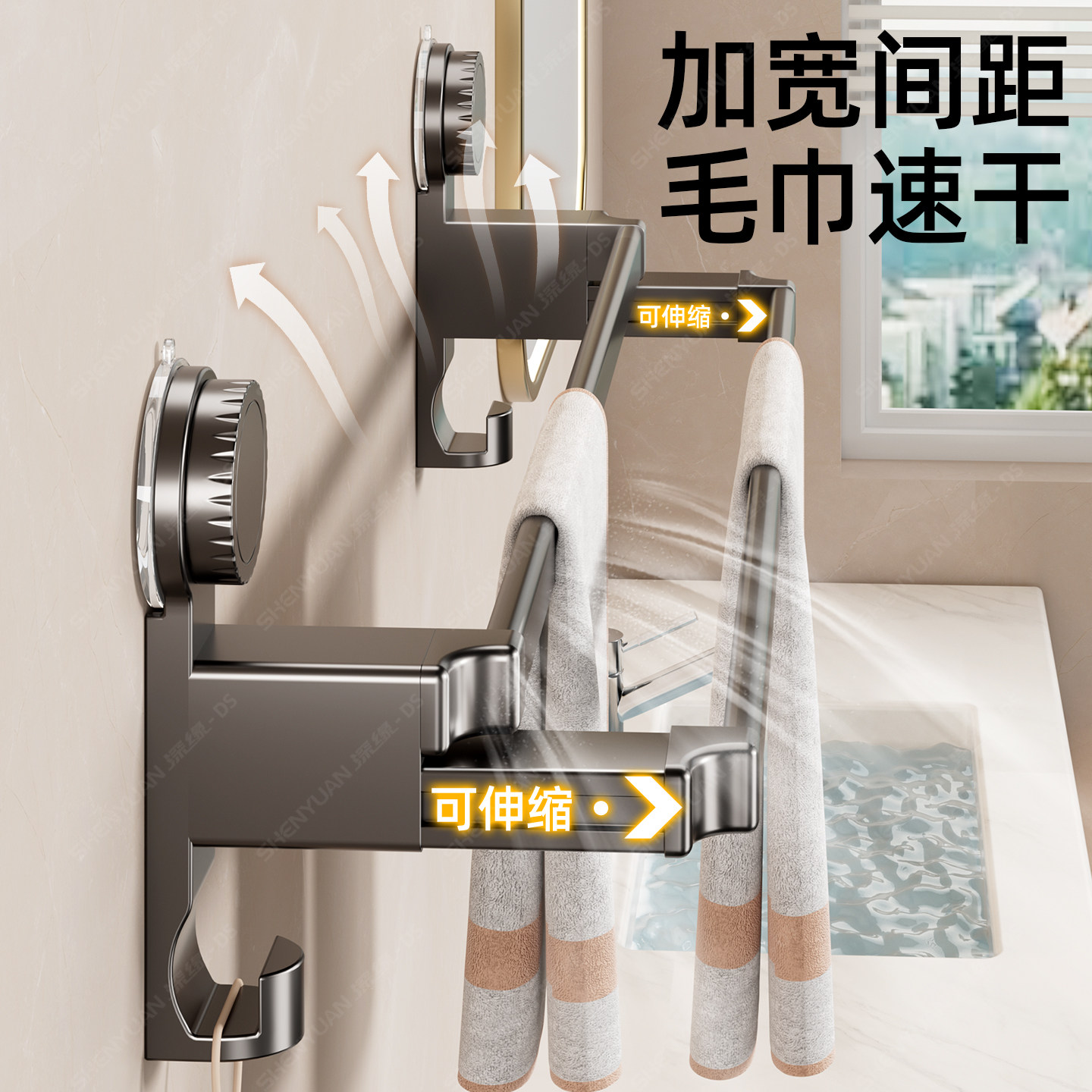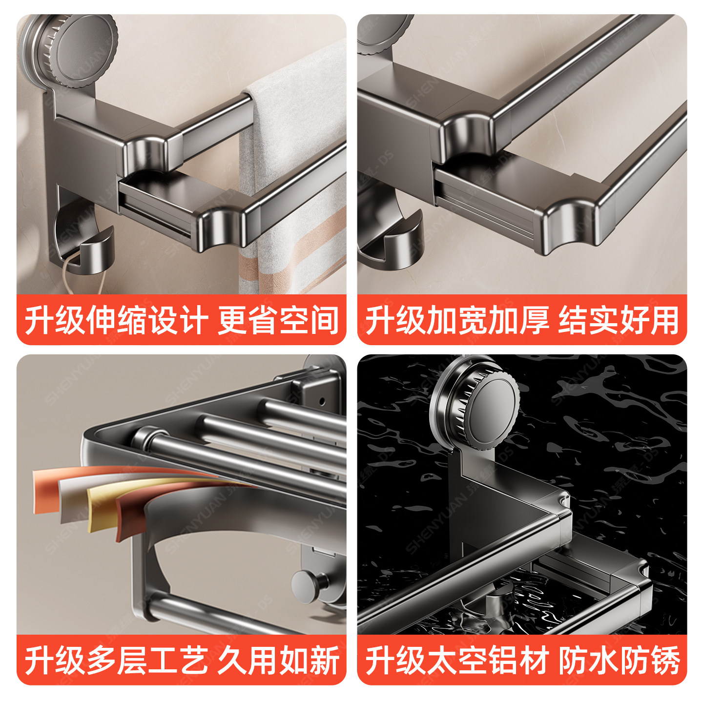 毛巾架卫生间免打孔毛巾杆吸盘式挂杆浴室挂毛巾的架子一体置物架